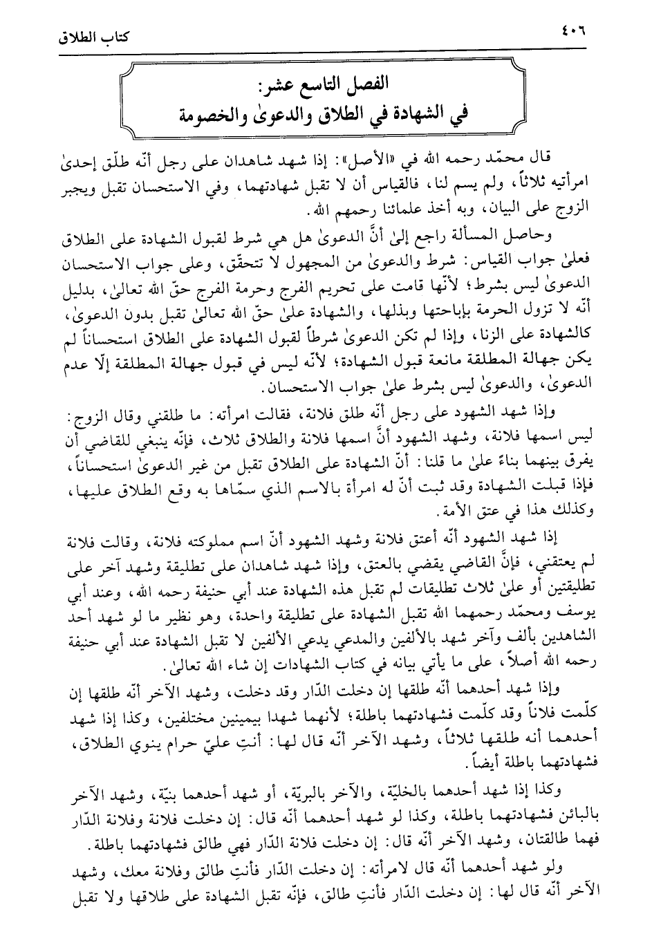 الفصل التاسع عشر: في الشهادة في الطلاق والدعوى والخصومة