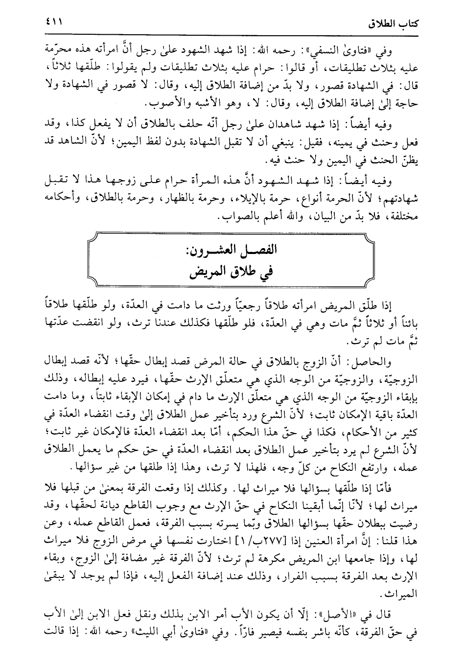وفيه أيضاً: إذا شهد الشهود أنَّ هذه المرأة حرام على زوجها هذا لا تقبل شهادتهم؛ لأنّ الحرمة أنواع، حرمة بالإيلاء، وحرمة بالظهار، وحرمة بالطلاق، وأحكامه مختلفة، فلا بدّ من البيان، والله أعلم بالصواب.