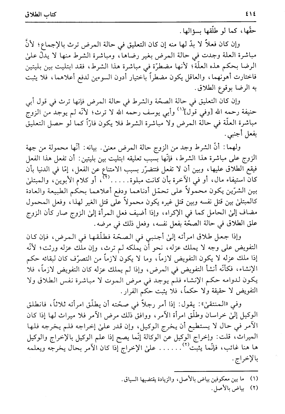 ولهما: أنّ الشرط وجد من الزوج حالة المرض معنى. بيانه: أنّها محمولة من جهة الزوج على مباشرة هذا الشرط، فإنّها بسبب تعليقه ابتليت بين بليتين: أن تفعل هذا الفعل فيقع الطلاق عليها، وبين أن لا تفعل فتتضرّر بسبب الامتناع عن الفعل، إمّا في الدنيا بأن كان استيفاء مال، أو في الآخرة بأن كانت مبلوة......، أو كلام الأبوين، والمبتلى بين الشرّين يكون محمولاً على تحمّل أدناهما ودفع أعلاهما بحكم الطبيعة والعادة كالمبتلى بين قتل نفسه وبين قتل غيره يكون محمولاً على قتل الغير لهذا، وفعل المحمول مضاف إلى الحامل كما في الإكراه، وإذا أضيف فعل المرأة إلى الزوج صار كأن الزوج علق الطلاق في حالة الصحّة بفعل نفسه، وفعل ذلك في مرضه.