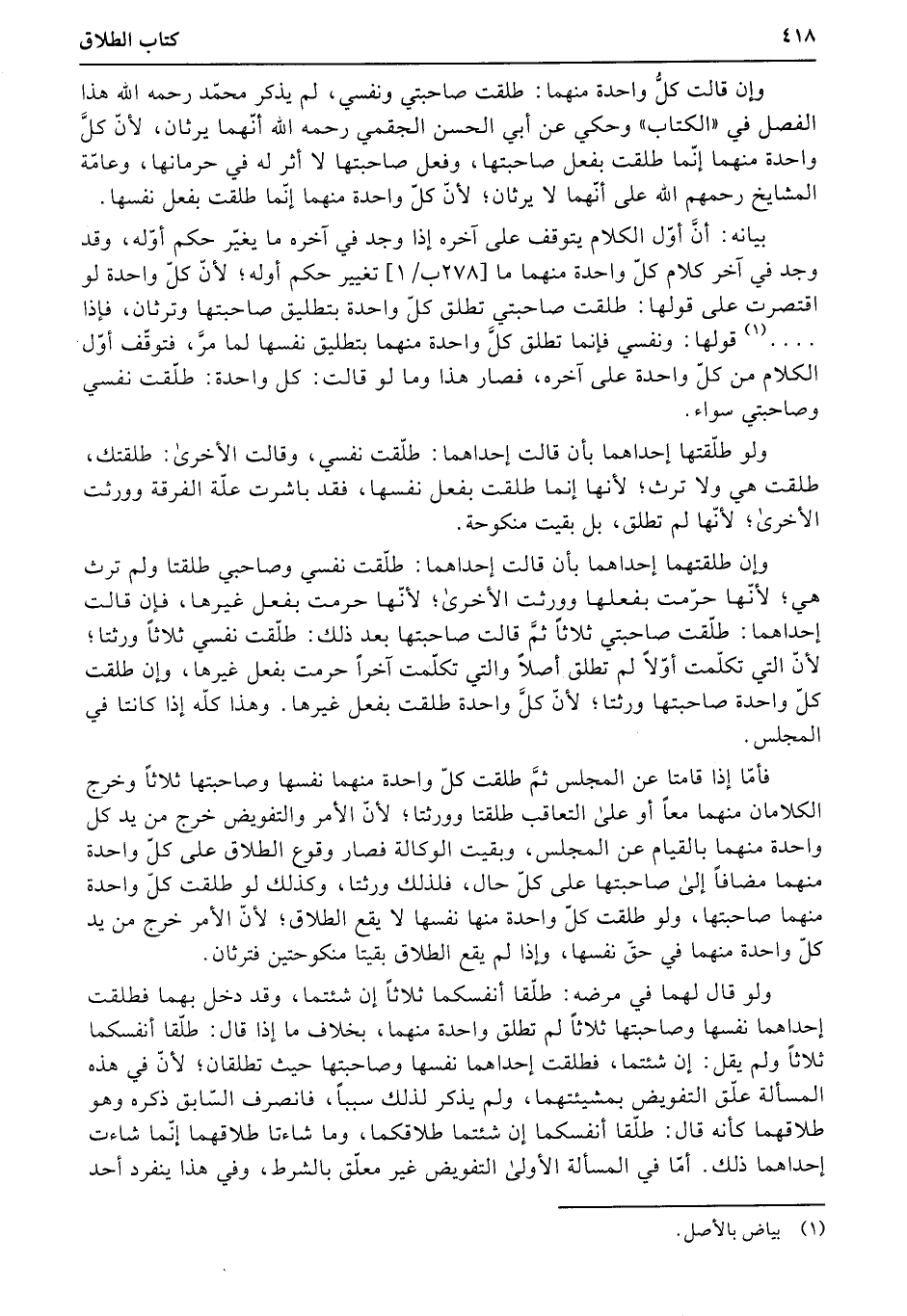 وإن قالت كلُّ واحدة منهما: طلقت صاحبتي ونفسي، لم يذكر محمّد رحمه الله هذا الفصل في «الكتاب» وحكي عن أبي الحسن الجقمي رحمه الله أنّهما يرثان، لأنّ كلَّ واحدة منهما إنّما طلقت بفعل صاحبتها، وفعل صاحبتها لا أثر له في حرمانها، وعامّة المشايخ رحمهم الله على أنّهما لا يرثان؛ لأنّ كلّ واحدة منهما إنّما طلقت بفعل نفسها.
