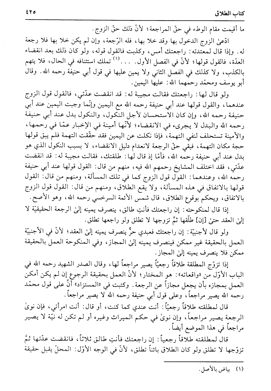 إذا قال لمنكوحته: إن راجعتك فأنتِ طالق، ينصرف يمينه إلى الرجعة الحقيقيّة لا إلى العقد حتى (إن) طلّقها ثمَّ تزوجها لا تطلق ولو راجعها تطلق.
