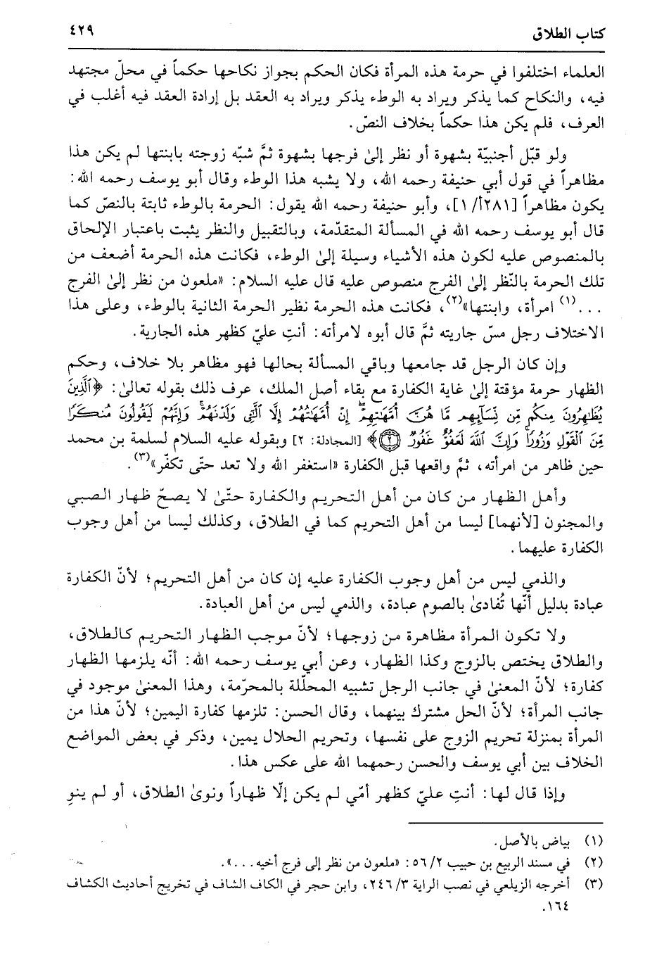 وإن كان الرجل قد جامعها وباقي المسألة بحالها فهو مظاهر بلا خلاف، وحكم الظهار حرمة مؤقتة إلى غاية الكفارة مع بقاء أصل الملك، عرف ذلك بقوله تعالى: {الَّذِينَ يُظَهِرُونَ مِنكُمْ مّن نّسَآئِهِمْ مَّا هُنَّ أُمَّهَتِهِمْ إِنْ أُمَّهَتُهُمْ إِلاَّ اللاَّئِى وَلَدْنَهُمْ وَإِنَّهُمْ لَيَقُولُونَ مُنكَراً مّنَ الْقَوْلِ وَزُوراً وَإِنَّ اللَّهَ لَعَفُوٌّ غَفُورٌ} (المجادلة: 2) وبقوله عليه السلام لسلمة بن محمد حين ظاهر من امرأته، ثمَّ واقعها قبل الكفارة «استغفر الله ولا تعد حتّى تكفّر» .