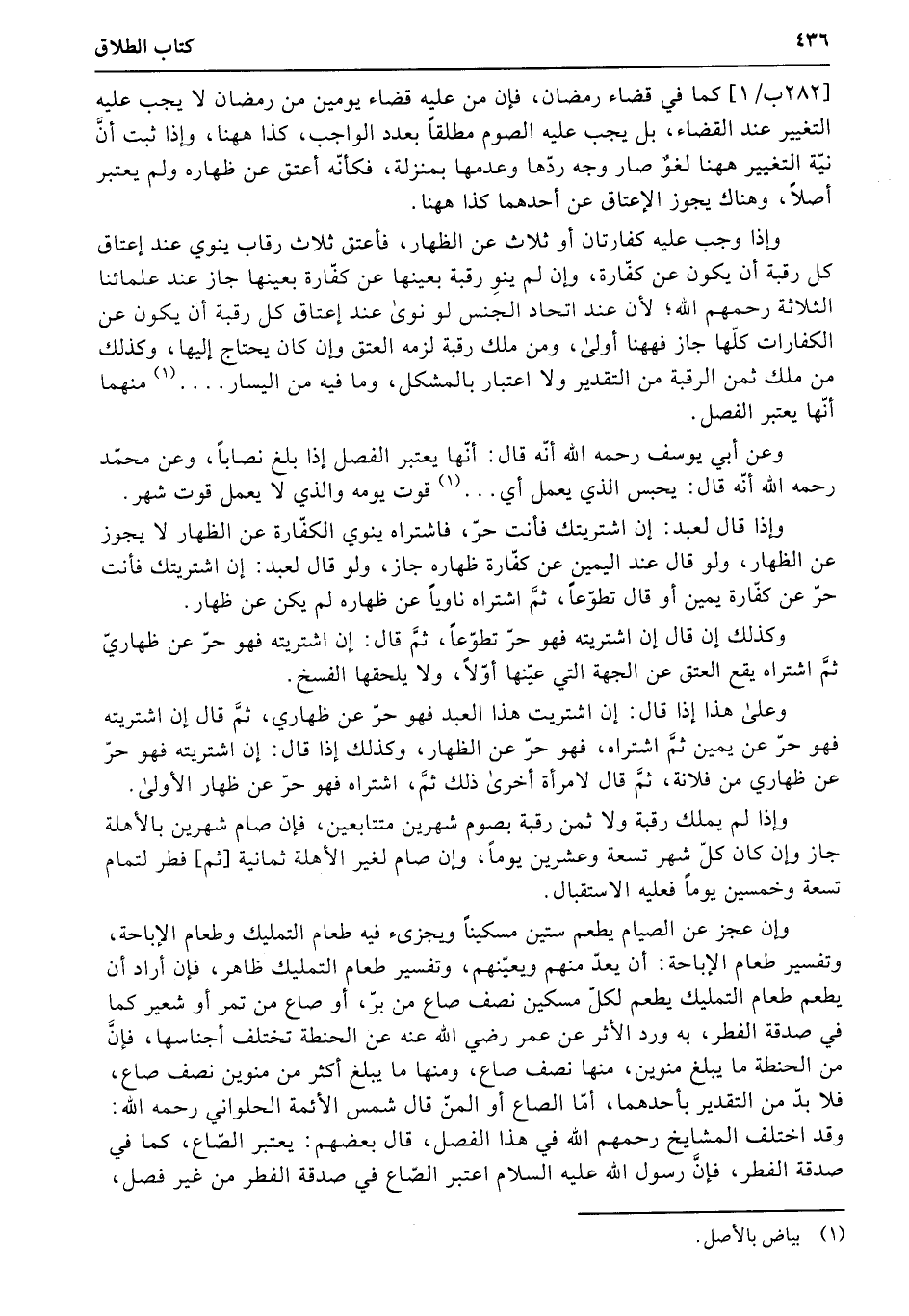 وإذا وجب عليه كفارتان أو ثلاث عن الظهار، فأعتق ثلاث رقاب ينوي عند إعتاق كل رقبة أن يكون عن كفّارة، وإن لم ينوِ رقبة بعينها عن كفّارة بعينها جاز عند علمائنا الثلاثة رحمهم الله؛ لأن عند اتحاد الجنس لو نوى عند إعتاق كل رقبة أن يكون عن الكفارات كلّها جاز فههنا أولى، ومن ملك رقبة لزمه العتق وإن كان يحتاج إليها، وكذلك من ملك ثمن الرقبة من التقدير ولا اعتبار بالمشكل، وما فيه من اليسار...... منهما أنّها يعتبر الفصل.