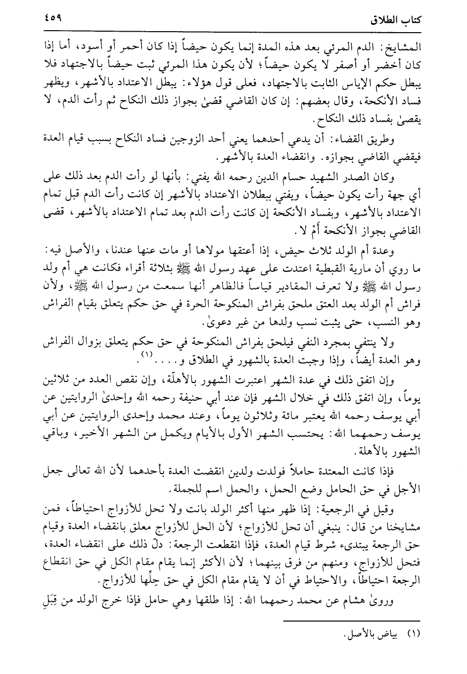وكان الصدر الشهيد حسام الدين رحمه الله يفتي: بأنها لو رأت الدم بعد ذلك على أي جهة رأت يكون حيضاً، ويفتي ببطلان الاعتداد بالأشهر إن كانت رأت الدم قبل تمام الاعتداد بالأشهر، وبفساد الأنكحة إن كانت (رأت) الدم بعد تمام الاعتداد بالأشهر، قضى القاضي بجواز الأنكحة أَمْ لا.