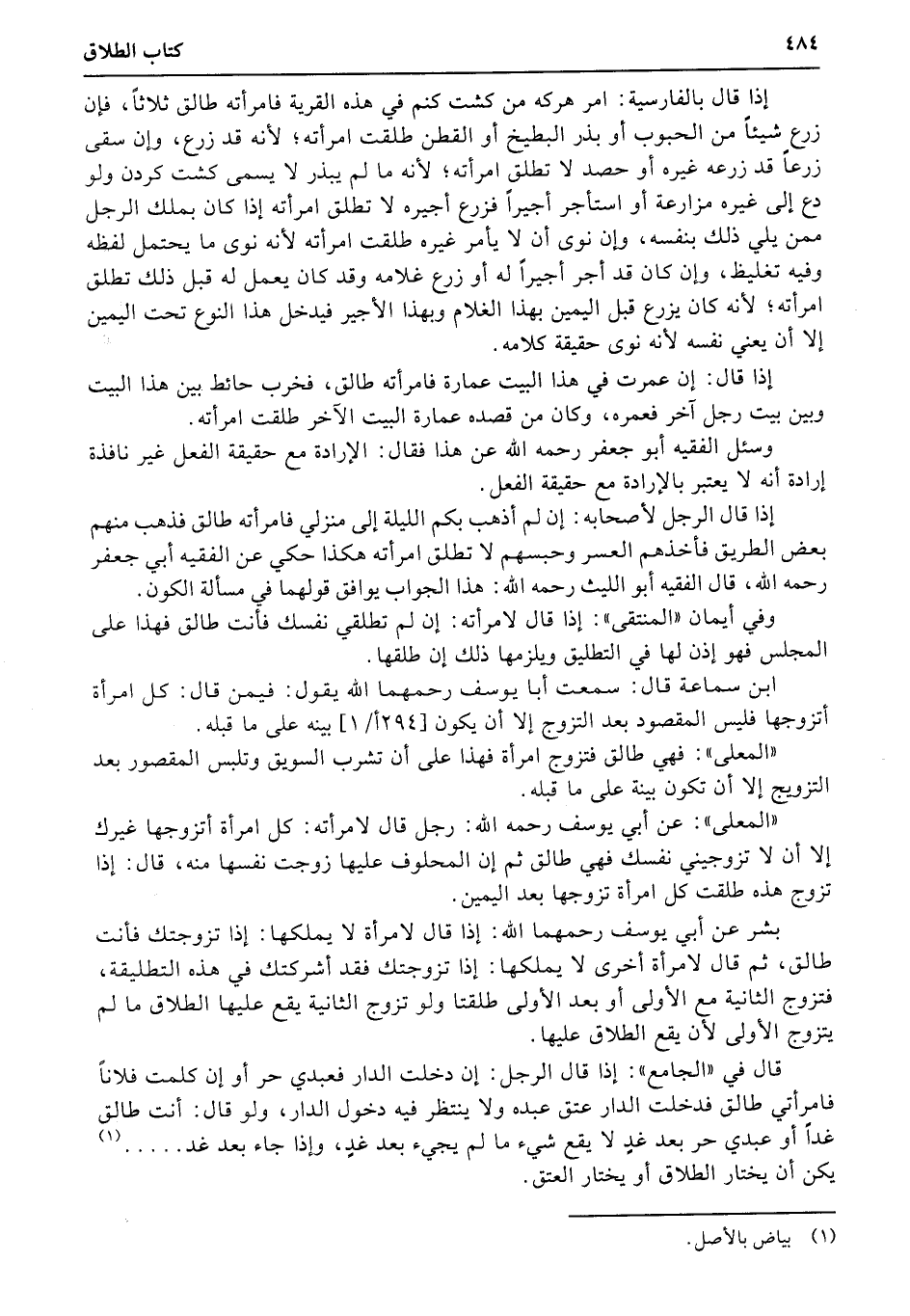 إذا قال بالفارسية امر هركه من كشت كنم في هذه القرية فامرأته طالق ثلاثاً، فإن زرع شيئاً من الحبوب أو بذر البطيخ أو القطن طلقت امرأته؛ لأنه قد زرع، وإن سقى زرعاً قد زرعه غيره أو حصد لا تطلق امرأته؛ لأنه ما لم يبذر لا يسمى كشت كردن ولو دع إلى غيره مزارعة أو استأجر أجيراً فزرع أجيره لا تطلق امرأته إذا كان بملك الرجل ممن يلي ذلك بنفسه، وإن نوى أن لا يأمر غيره طلقت امرأته لأنه نوى ما يحتمل لفظه وفيه تغليظ، وإن كان قد أجر أجيراً له أو زرع غلامه وقد كان يعمل له قبل ذلك تطلق امرأته؛ لأنه كان يزرع قبل اليمين بهذا الغلام وبهذا الأجير فيدخل هذا النوع تحت اليمين إلا أن يعني نفسه لأنه نوى حقيقة كلامه.