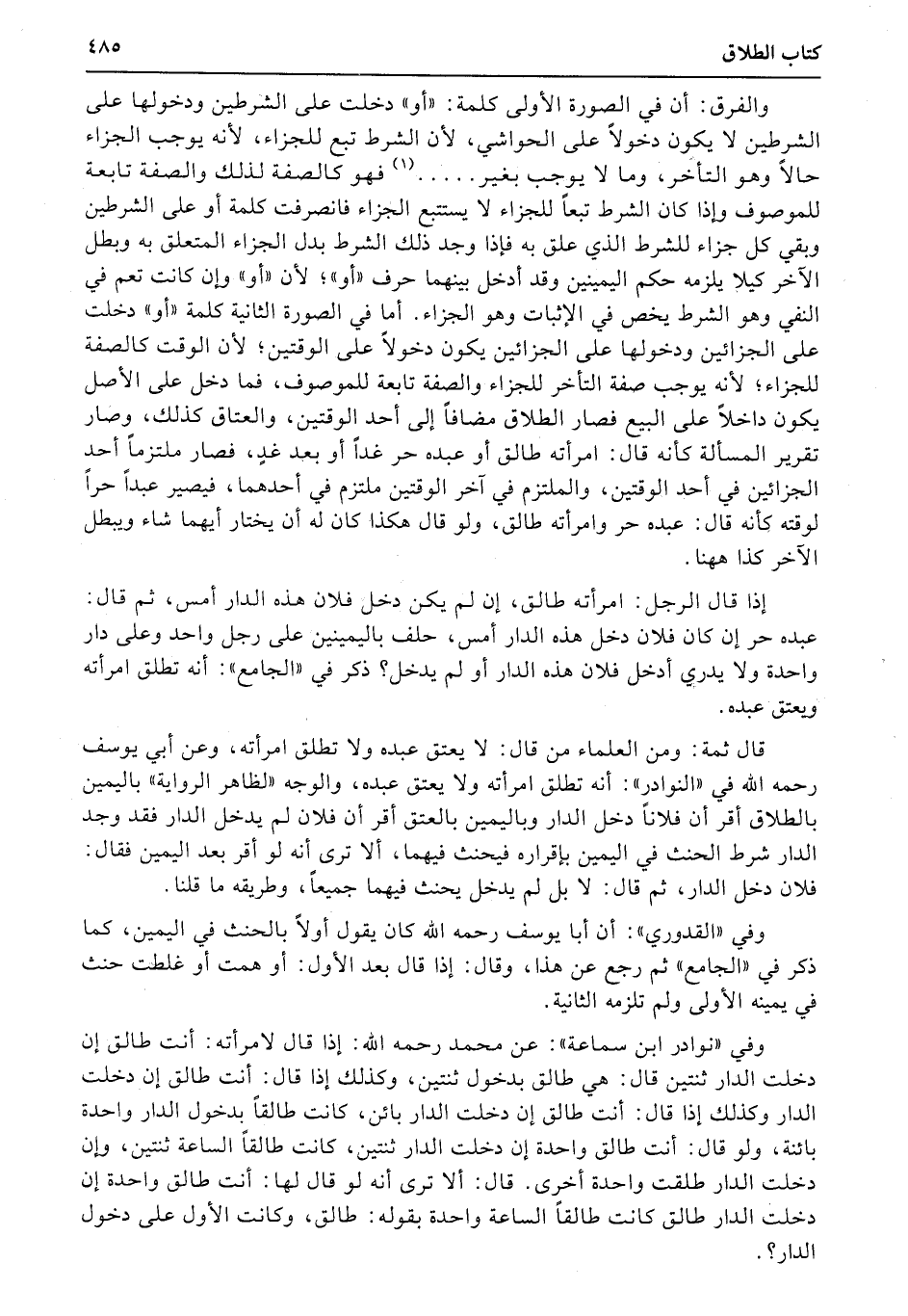 والفرق: أن في الصورة الأولى كلمة: «أو» دخلت على الشرطين ودخولها على الشرطين لا يكون دخولاً على الحواشي، لأن الشرط تبع للجزاء، لأنه يوجب الجزاء حالاً وهو التأخر، وما لا يوجب بغير..... فهو كالصفة لذلك والصفة تابعة للموصوف وإذا كان الشرط تبعاً للجزاء لا يستتبع الجزاء فانصرفت كلمة أو على الشرطين وبقي كل جزاء للشرط الذي علق به فإذا وجد ذلك الشرط بدل الجزاء المتعلق به وبطل الآخر كيلا يلزمه حكم اليمينين وقد أدخل بينهما حرف «أو» ؛ لأن «أو» وإن كانت تعم في النفي وهو الشرط يخص في الإثبات وهو الجزاء. أما في الصورة الثانية كلمة «أو» دخلت على الجزائين ودخولها على الجزائين يكون دخولاً على الوقتين؛ لأن الوقت كالصفة للجزاء؛ لأنه يوجب صفة التأخر للجزاء والصفة تابعة للموصوف، فما دخل على الأصل يكون داخلاً على البيع فصار الطلاق مضافاً إلى أحد الوقتين، والعتاق كذلك، وصار تقرير المسألة كأنه قال: امرأته طالق أو عبده حر غداً أو بعد غدٍ، فصار ملتزماً أحد الجزائين في أحد الوقتين، والملتزم في آخر الوقتين ملتزم في أحدهما، فيصير عبداً حراً لوقته كأنه قال: عبده حر وامرأته طالق، ولو قال هكذا كان له أن يختار أيهما شاء ويبطل الآخر كذا ههنا.