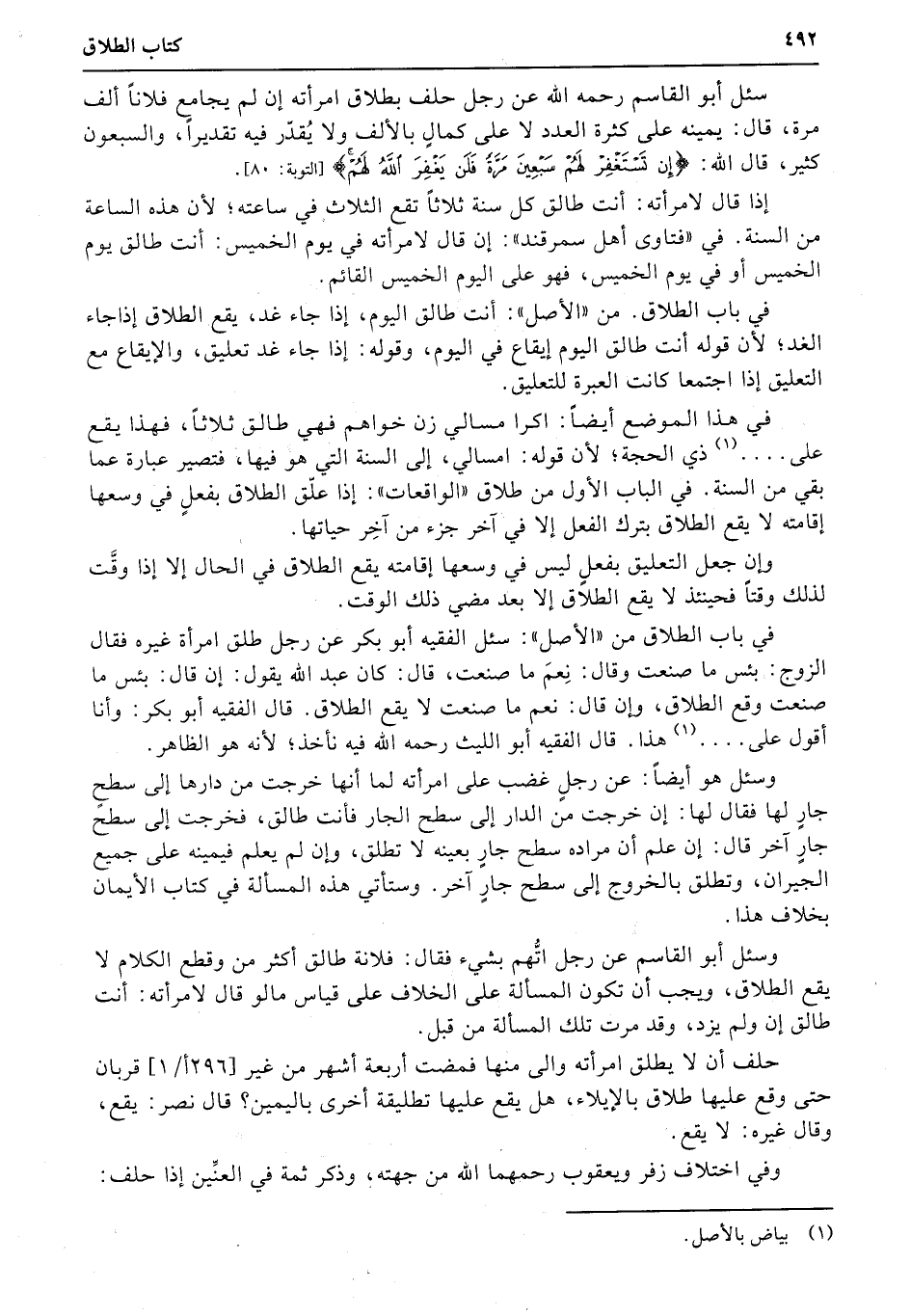 سئل أبو القاسم رحمه الله عن رجل حلف بطلاق امرأته إن لم يجامع فلاناً ألف مرة، قال: يمينه على كثرة العدد لا على كمالٍ بالألف ولا يُقدّر فيه تقديراً، والسبعون كثير، قال الله: {إن تستغفر لهم سبعين مرة فلن يغفر الهم} (التوبة: 80) .