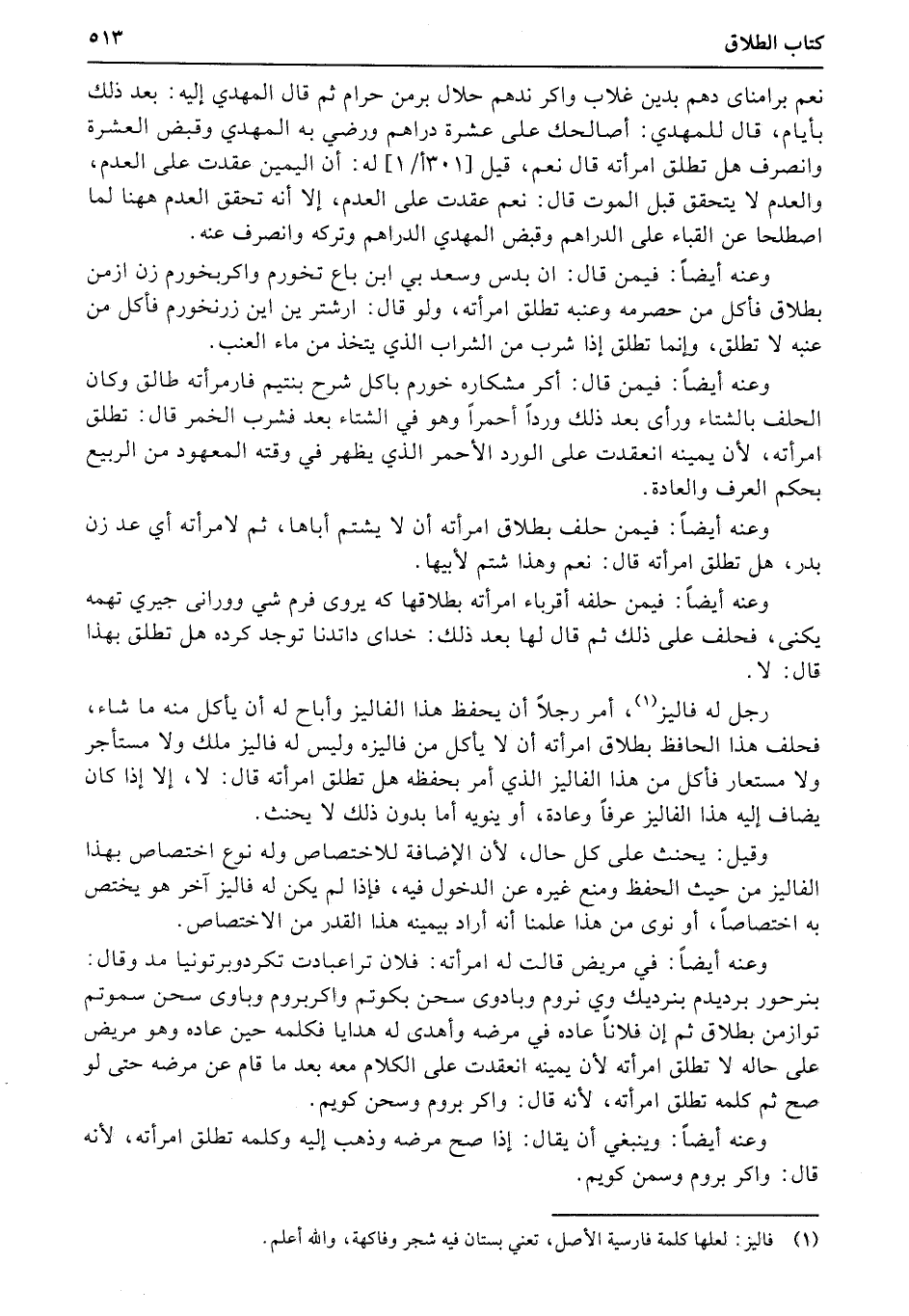نعم برامناى دهم بدين غلاب واكر ندهم حلال برمن حرام ثم قال المهدي إليه: بعد ذلك بأيام، قال للمهدي: أصالحك على عشرة دراهم ورضي به المهدي وقبض العشرة وانصرف هل تطلق امرأته قال نعم، قيل (301أ1) له: أن اليمين عقدت على العدم، والعدم لا يتحقق قبل الموت قال: نعم عقدت على العدم، إلا أنه تحقق العدم ههنا لما اصطلحا عن القباء على الدراهم وقبض المهدي الدراهم وتركه وانصرف عنه.