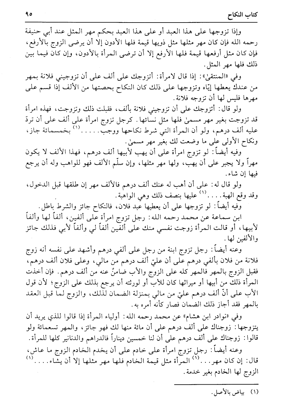 وعنه أيضاً: رجل تزوج امرأة على خادم على أن يخدم الخادم الزوج ما عاش، قال: إن كان مهر ... المرأة مثل قيمة الخادم فلها مهر مثلها إلا أن يشاء...... الزوج لها الخادم بغير خدمة.