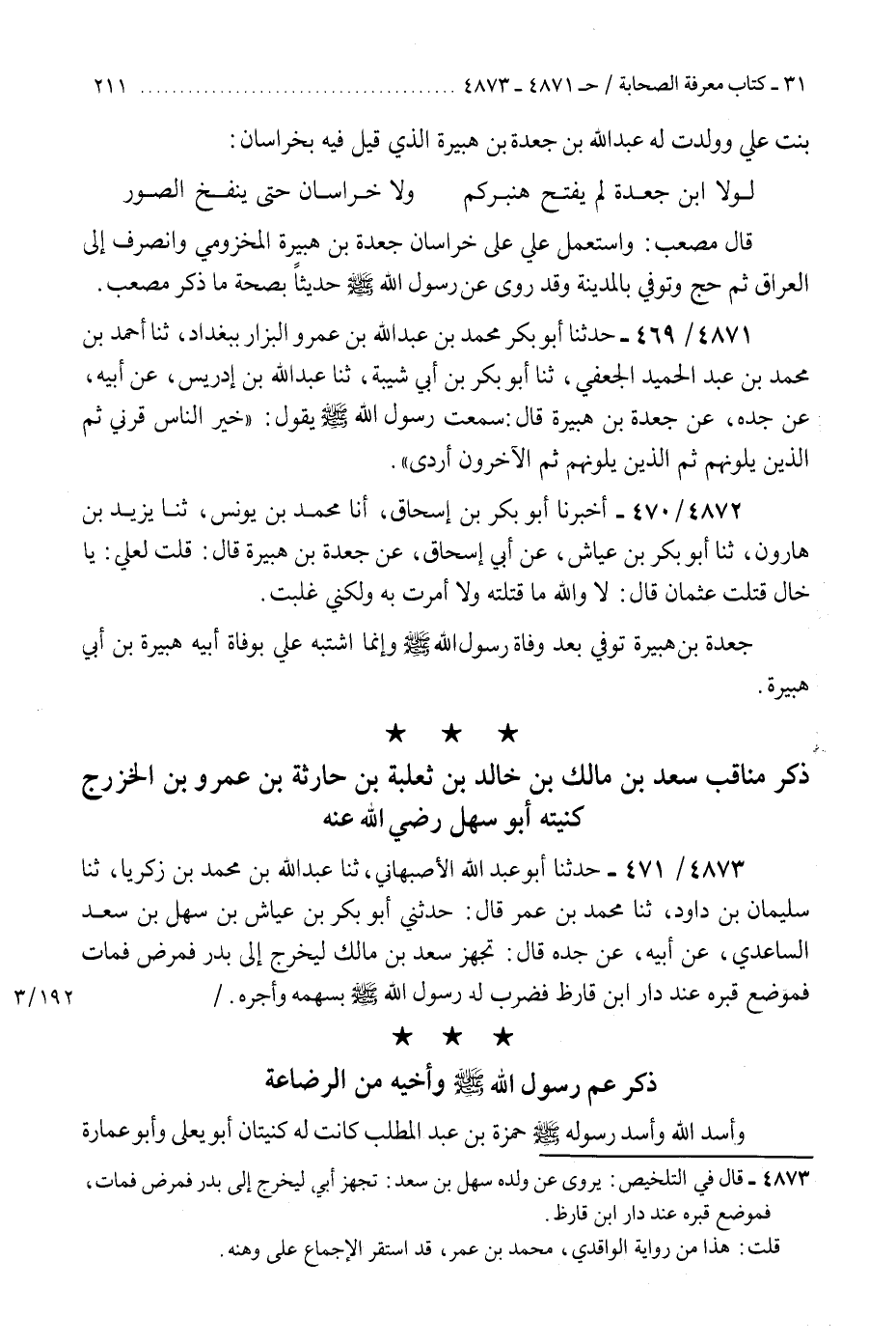§ذِكْرُ مَنَاقِبِ سَعْدِ بْنِ مَالِكِ بْنِ خَالِدِ بْنِ ثَعْلَبَةَ بْنِ حَارِثَةَ بْنِ عَمْرِو بْنِ الْخَزْرَجِ، كُنْيَتُهُ أَبُو سَهْلٍ رَضِيَ اللَّهُ عَنْهُ