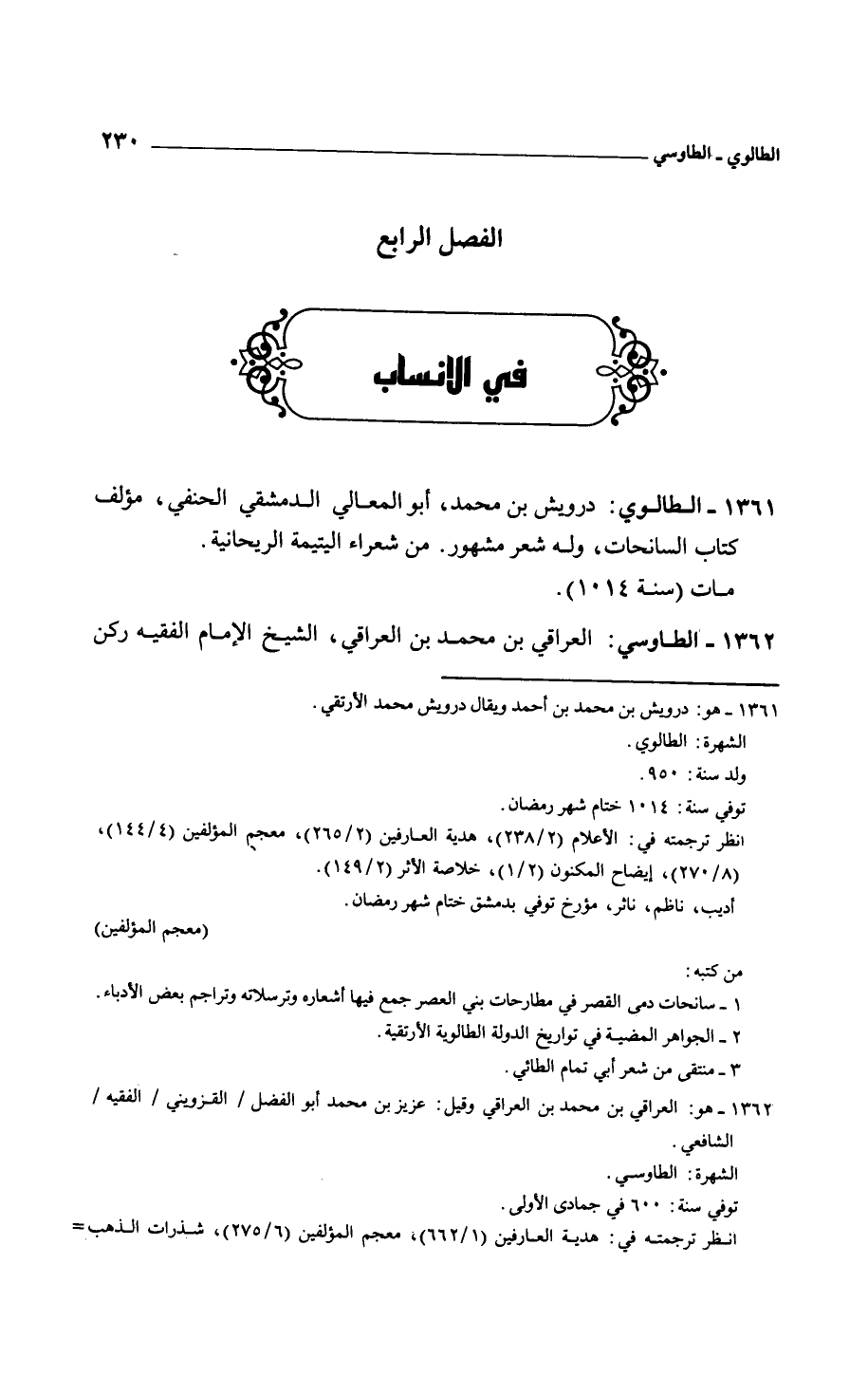 الطالوي: درويش بن محمد، أبو المعالي الدمشقي الحنفي، مؤلف كتاب السانحات، وله شعر مشهور. من شعراء اليتيمة الريحانية. مات سنة 1014.