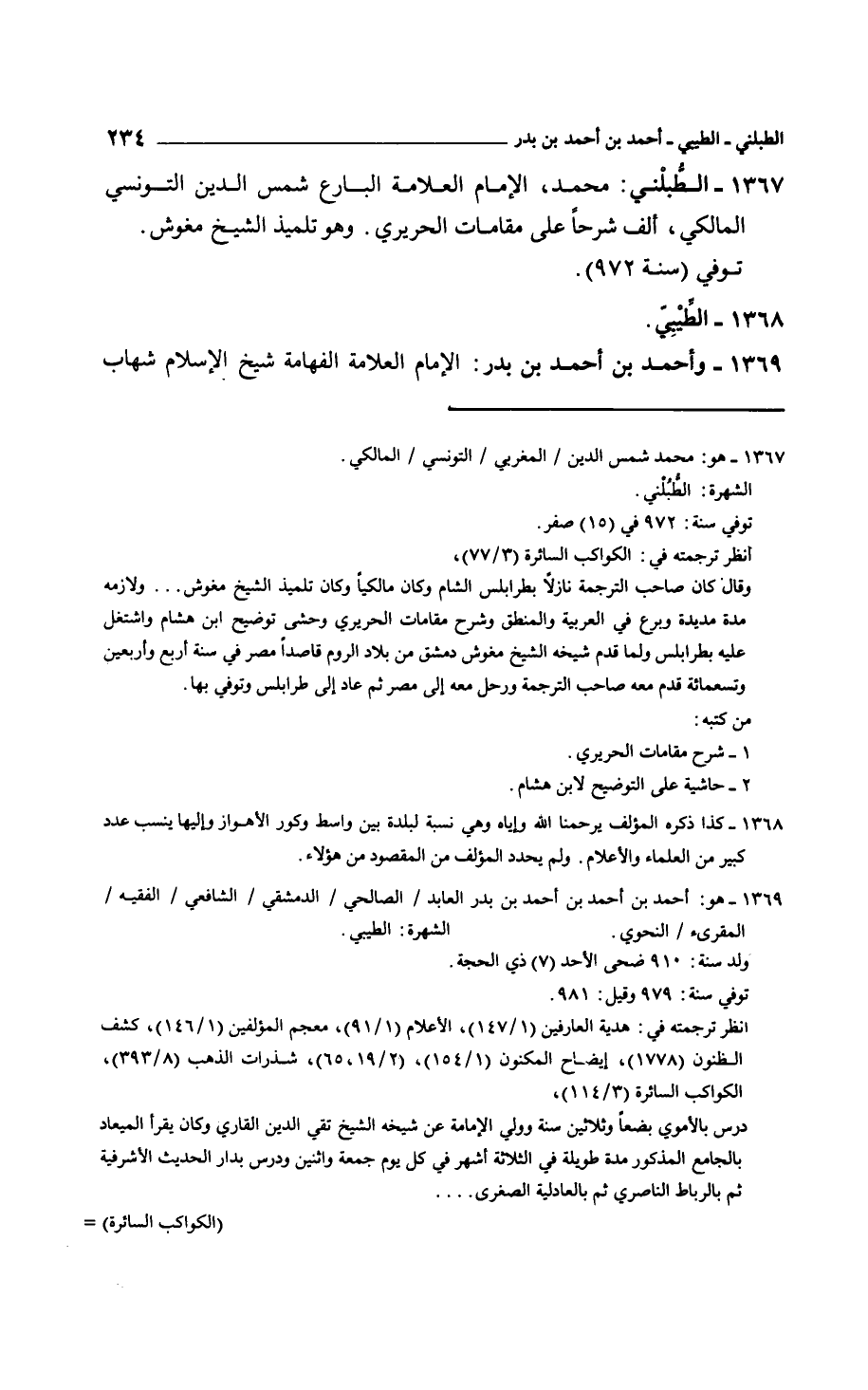 الطُّبلْني: محمد، الإمام العلامة البارع شمس الدين التونسي المالكي، ألف شرحاً على مقامات الحريري. وهو تلميذ الشيخ مغوش. توفي سنة 972.