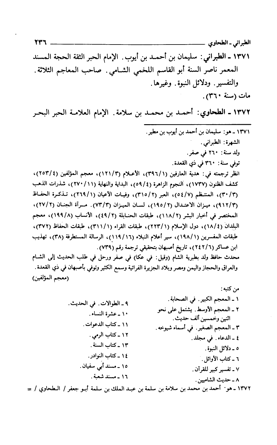 الطبراني: سليمان بن أحمد بن أيوب. الإمام الحبر الثقة الحجة المسند المعمر ناصر السنة أبو القاسم اللخمي الشامي. صاحب المعاجم الثلاثة. والتفسير. ودلائل النبوة. وغيرها. مات سنة 360.