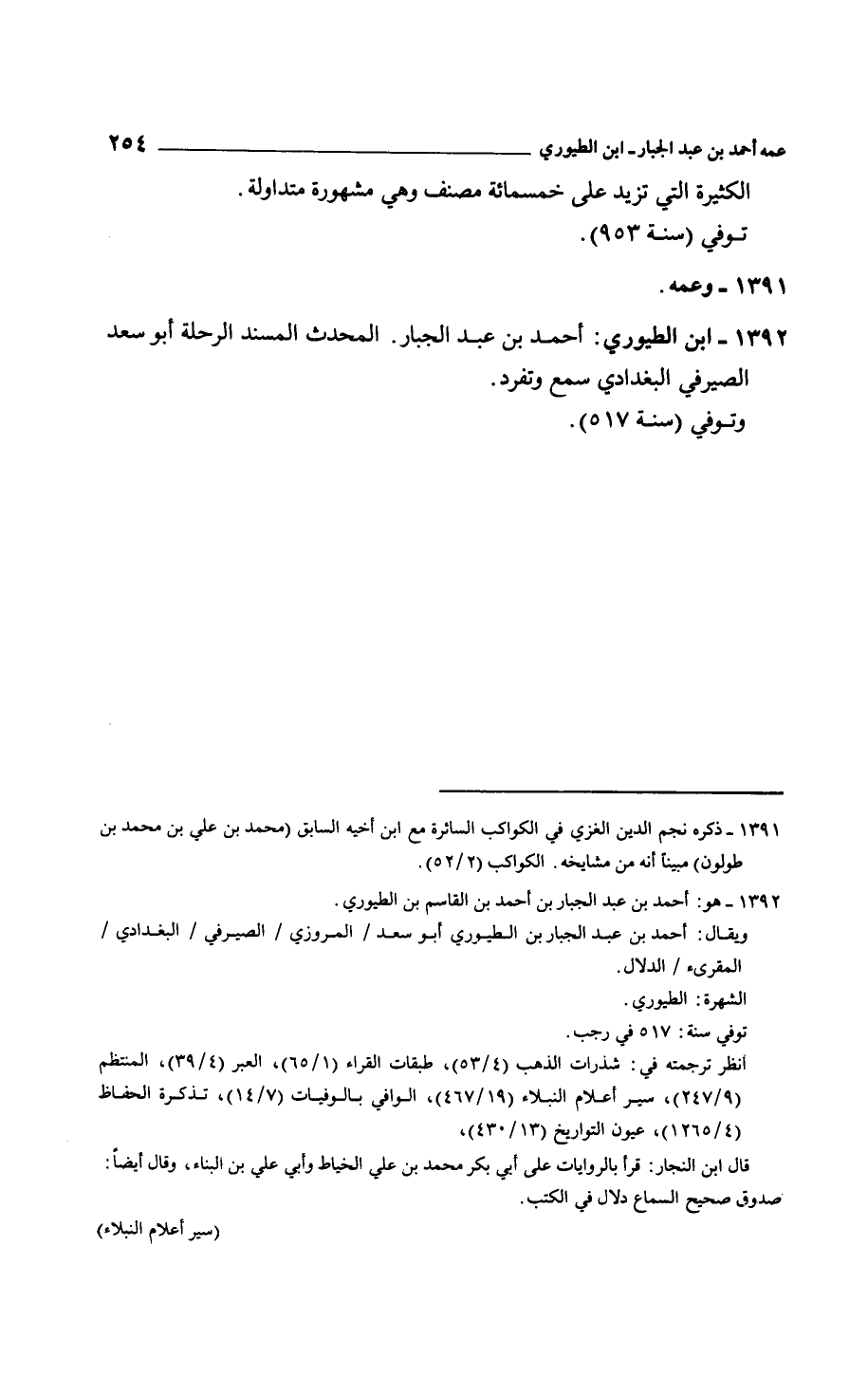 ابن الطيوري: أحمد بن عبد الجبار. المحدث المسند الرحلة أبو سعد الصيرفي البغدادي سمع وتفرد. وتوفي سنة 517.