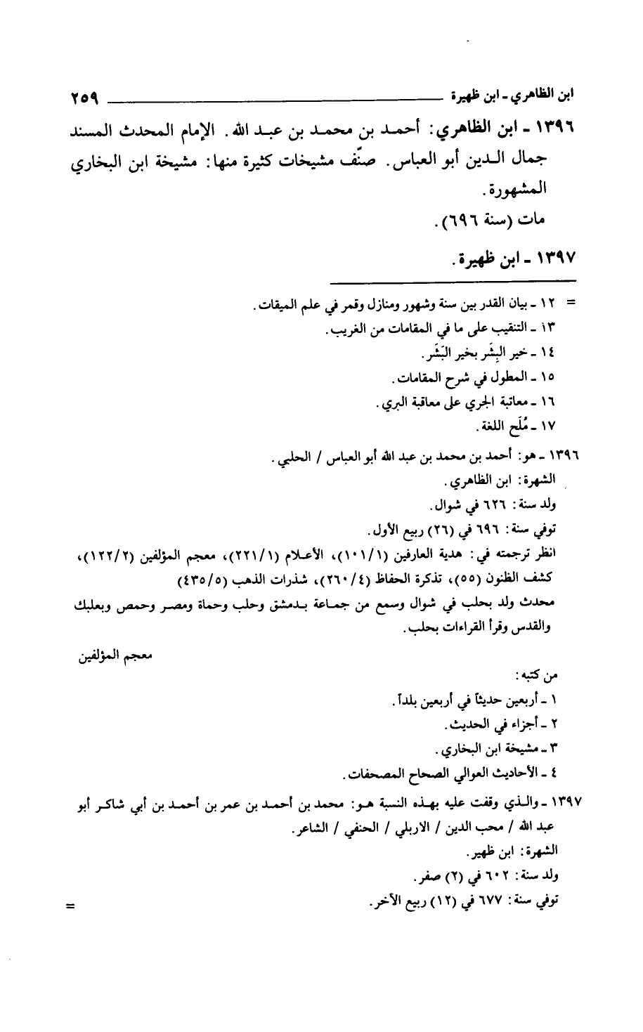 ابن الظاهري: أحمد بن محمد بن عبد الله. الإمام المحدث المسند جمال الدين أبو العباس. صنّف مشيخات كثيرة منها: مشيخة ابن البخاري المشهورة. مات سنة 696.