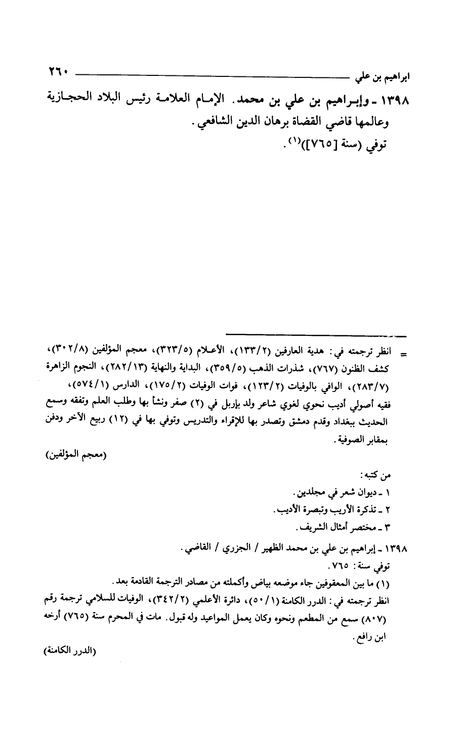 وإبراهيم بن علي بن محمد. الإمام العلامة رئيس البلاد الحجازية وعالمها قاضي القضاة برهان الدين الشافعي. توفي سنة 765.