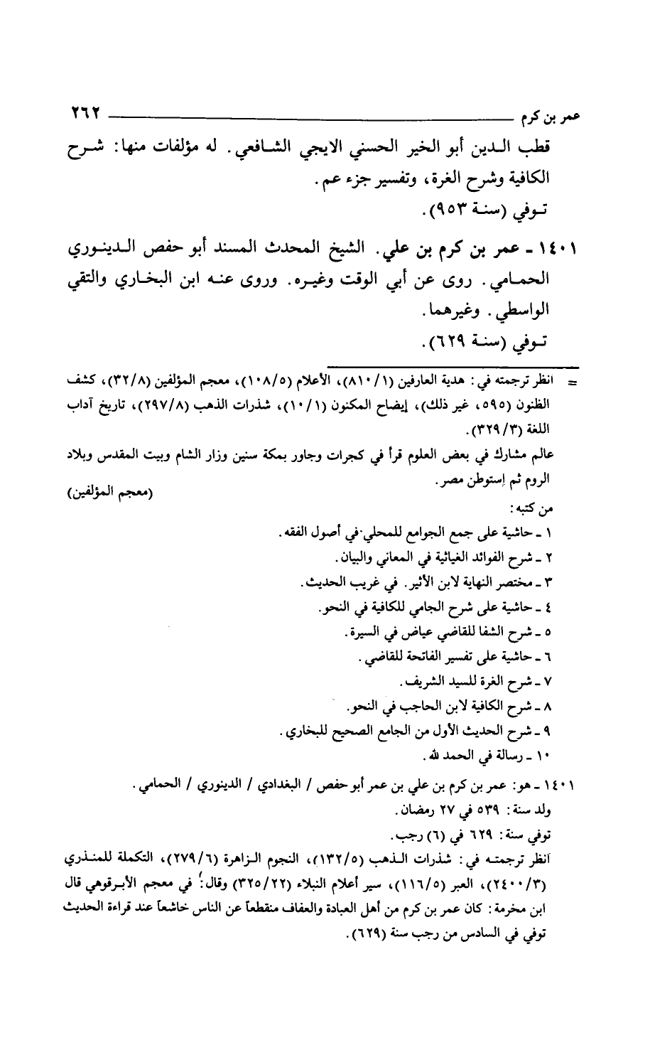 عمر بن كرم بن علي. الشيخ المحدث المسند أبو حفص الدينوري الحمامي. روى عن أبي الوقت وغيره. وروى عنه ابن البخاري والتقي الواسطي. وغيرهما توفي سنة 629.