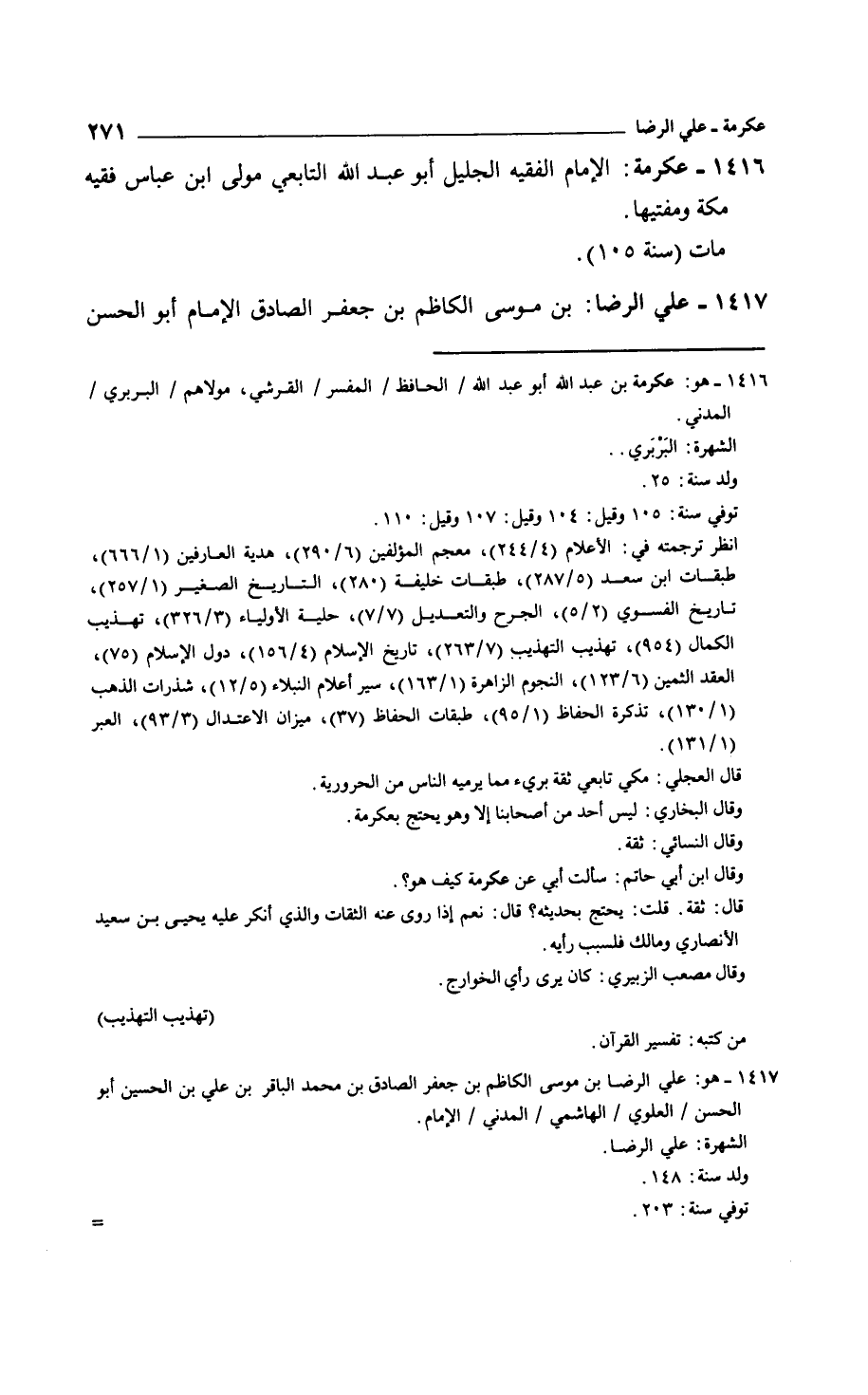 عكرمة: الإمام الفقيه الجليل أبو عبد الله التابعي مولى ابن عباس فقيه مكة ومفتيها. مات سنة 105.