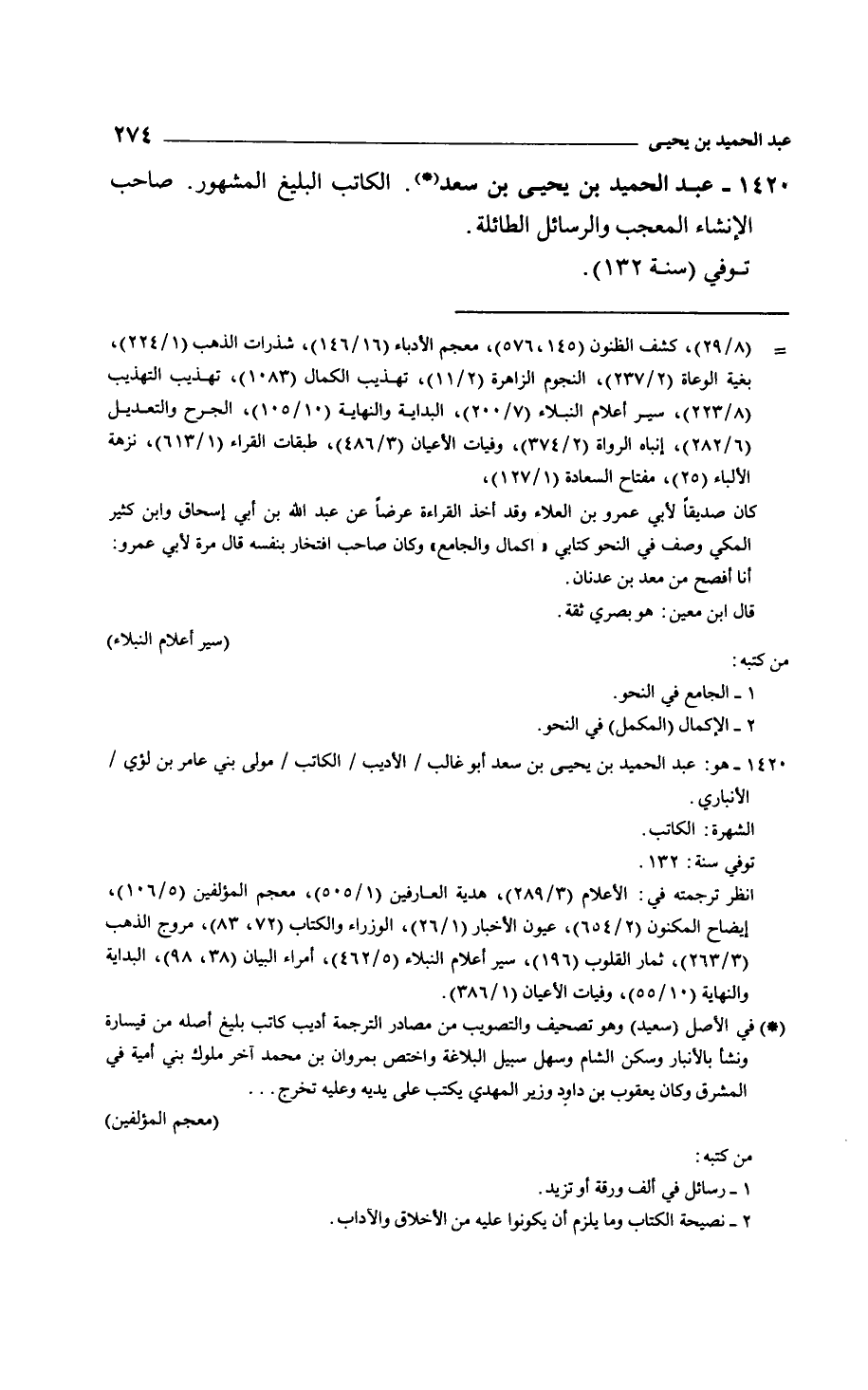عبد الحميد بن يحيى بن سعد. الكاتب البليغ المشهور. صاحب الإنشاء المعجب والرسائل الطائلة. توفي سنة 132.