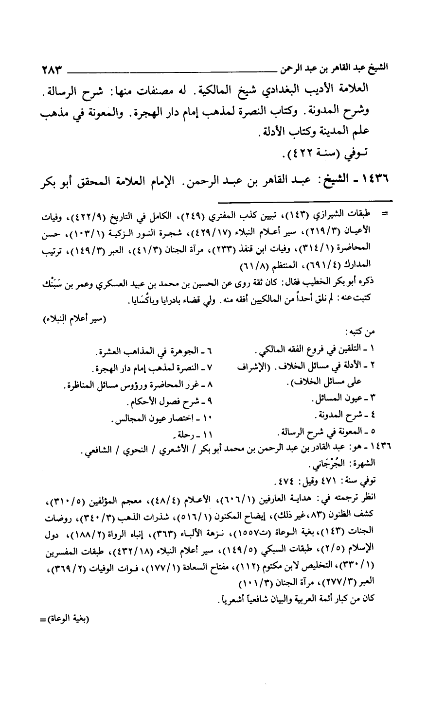 الشيخ: عبد القاهر بن عبد الرحمن. الإمام العلامة المحقق أبو بكر