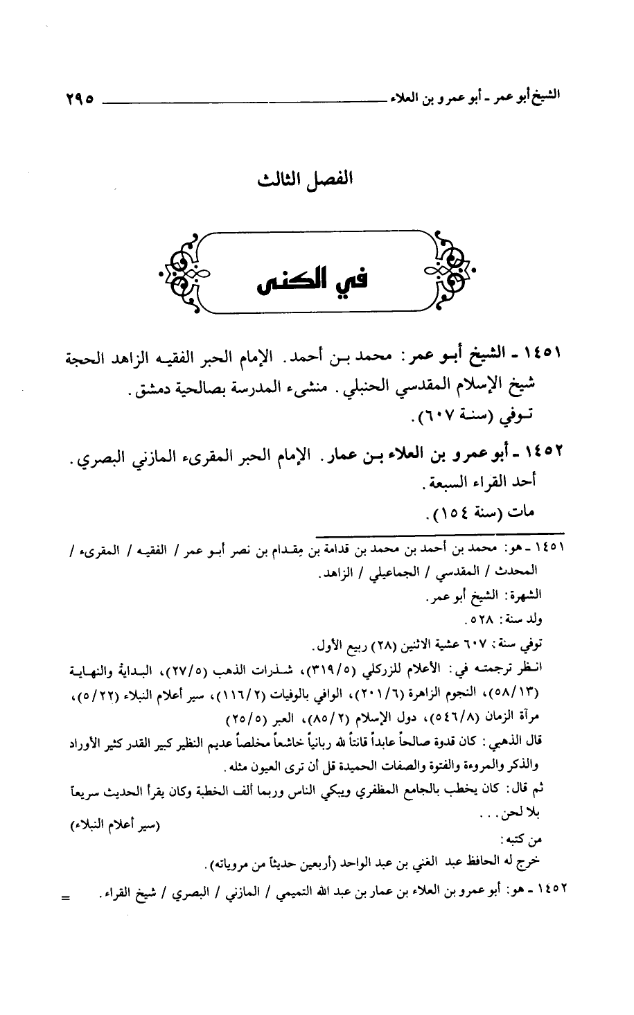 الشيخ أبو عمر: محمد بن أحمد. الإمام الحبر الفقيه الزاهد الحجة شيخ الإسلام المقدسي الحنبلي. منشئ المدرسة بصالحية دمشق. توفي سنة 607.
