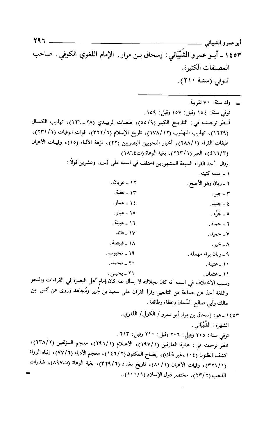 أبو عمرو الشَيْبَاني: إسحاق بن مرار. الإمام اللغوي الكوفي. صاحب المصنفات الكثيرة. توفي سنة 210.