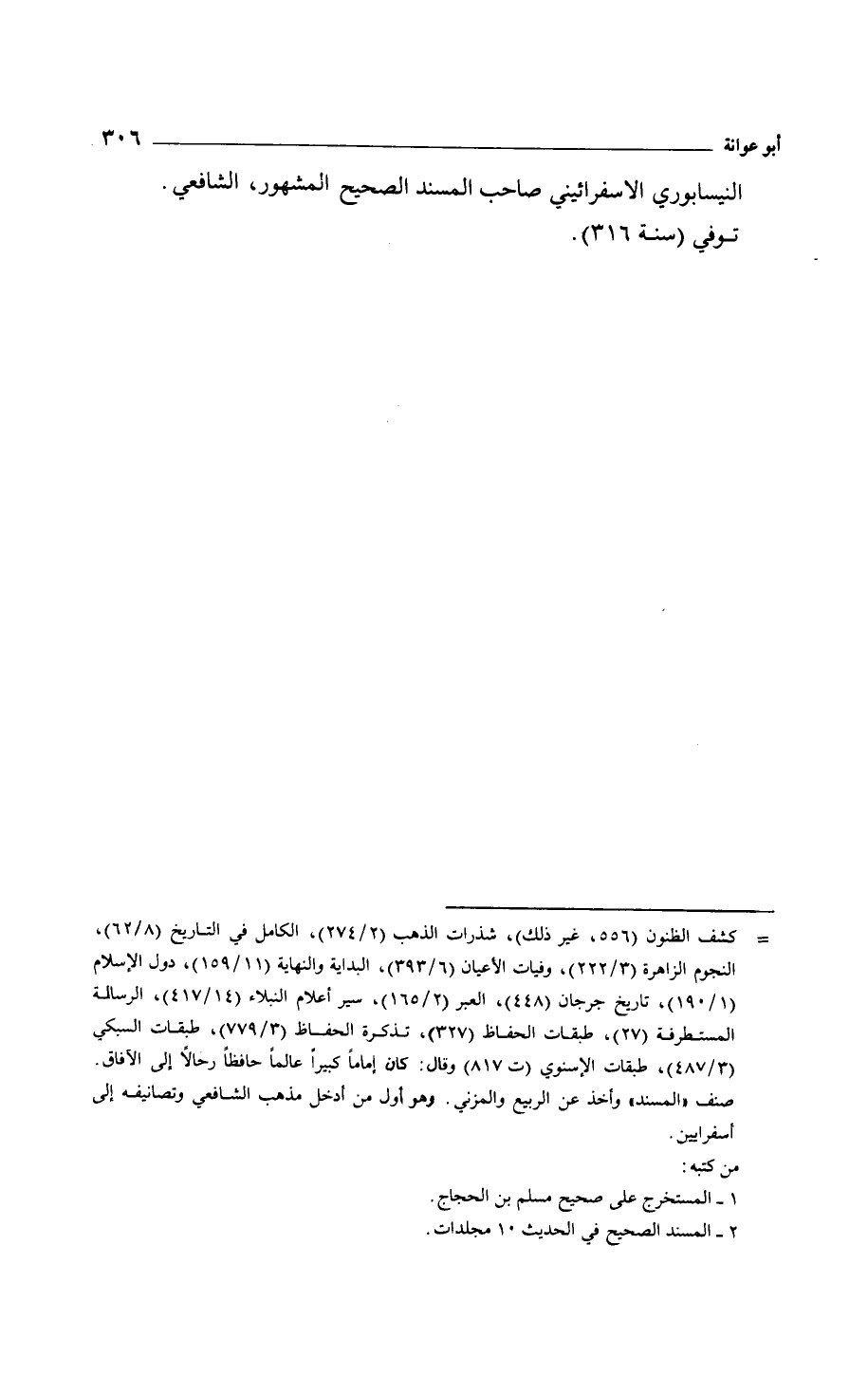 النيسابوري الاسفرائيني صاحب المسند الصحيح المشهور، الشافعي. توفي سنة 316.