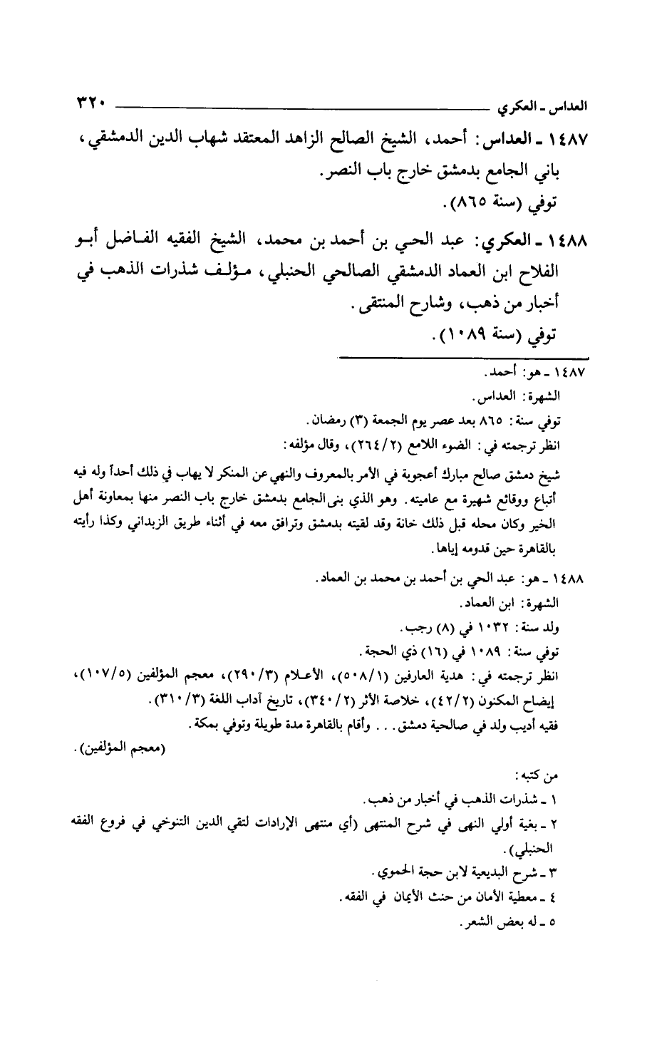 العكري: عبد الحي بن أحمد بن محمد، الشيخ الفقيه الفاضل أبو الفلاح ابن العماد الدمشقي الصالح الحنبلي، مؤلف شذرات الذهب في أخبار من ذهب، وشارح المنتقى. توفي سنة 1089.