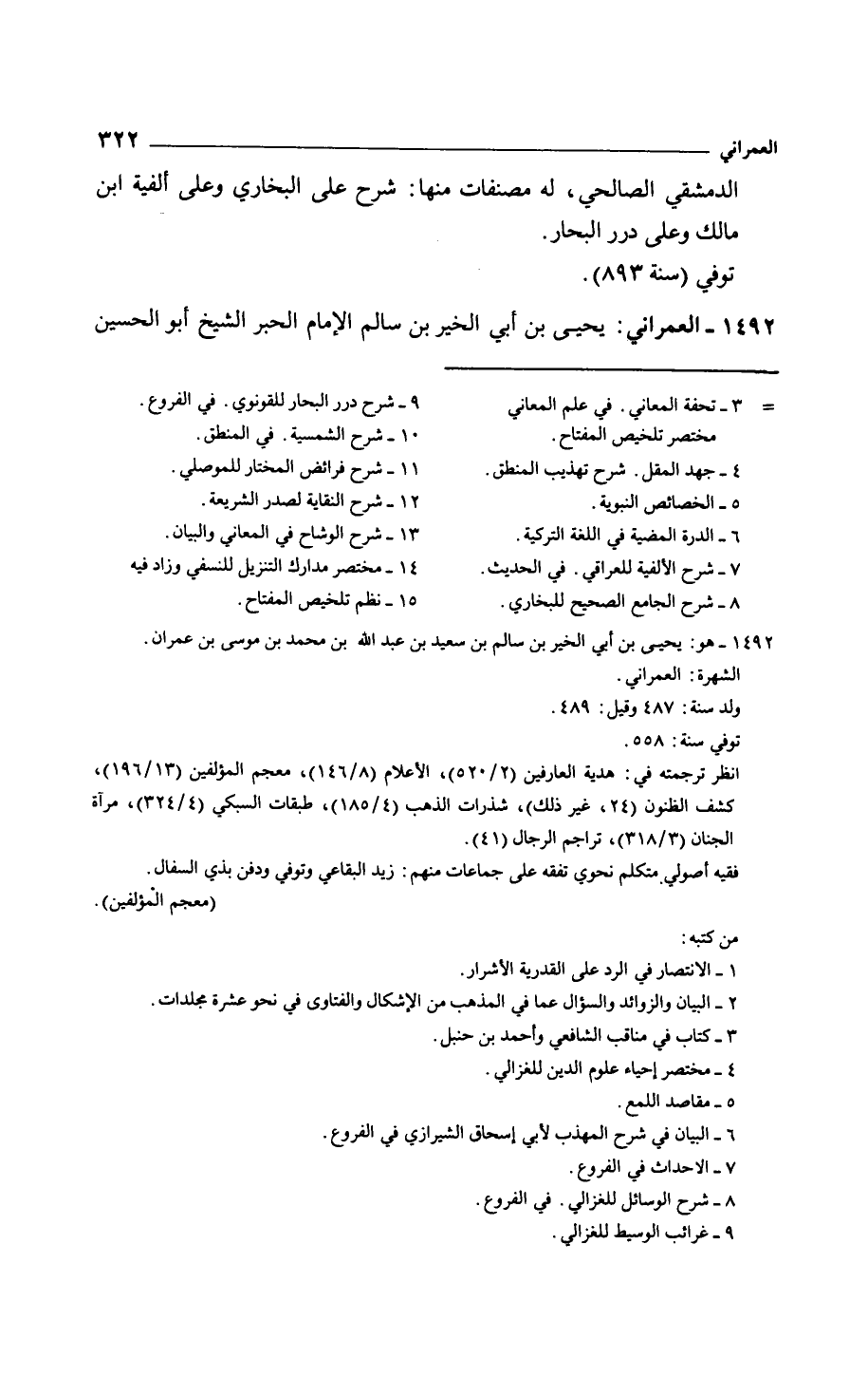 العمراني: يحيى بن أبي الخير بن سالم الإمام الحبر الشيخ أبو الحسين