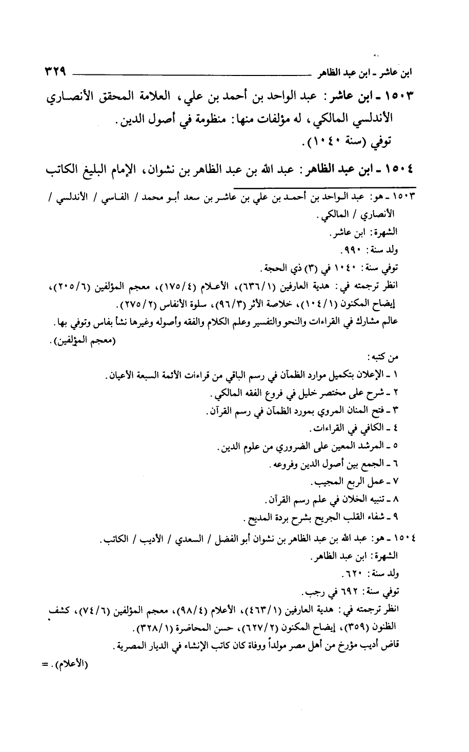 ابن عاشر: عبد الواحد بن أحمد بن علي، العلامة المحقق الأنصاري الأندلسي المالكي، له مؤلفات منها: منظومة في أصول الدين. توفي سنة 1040.