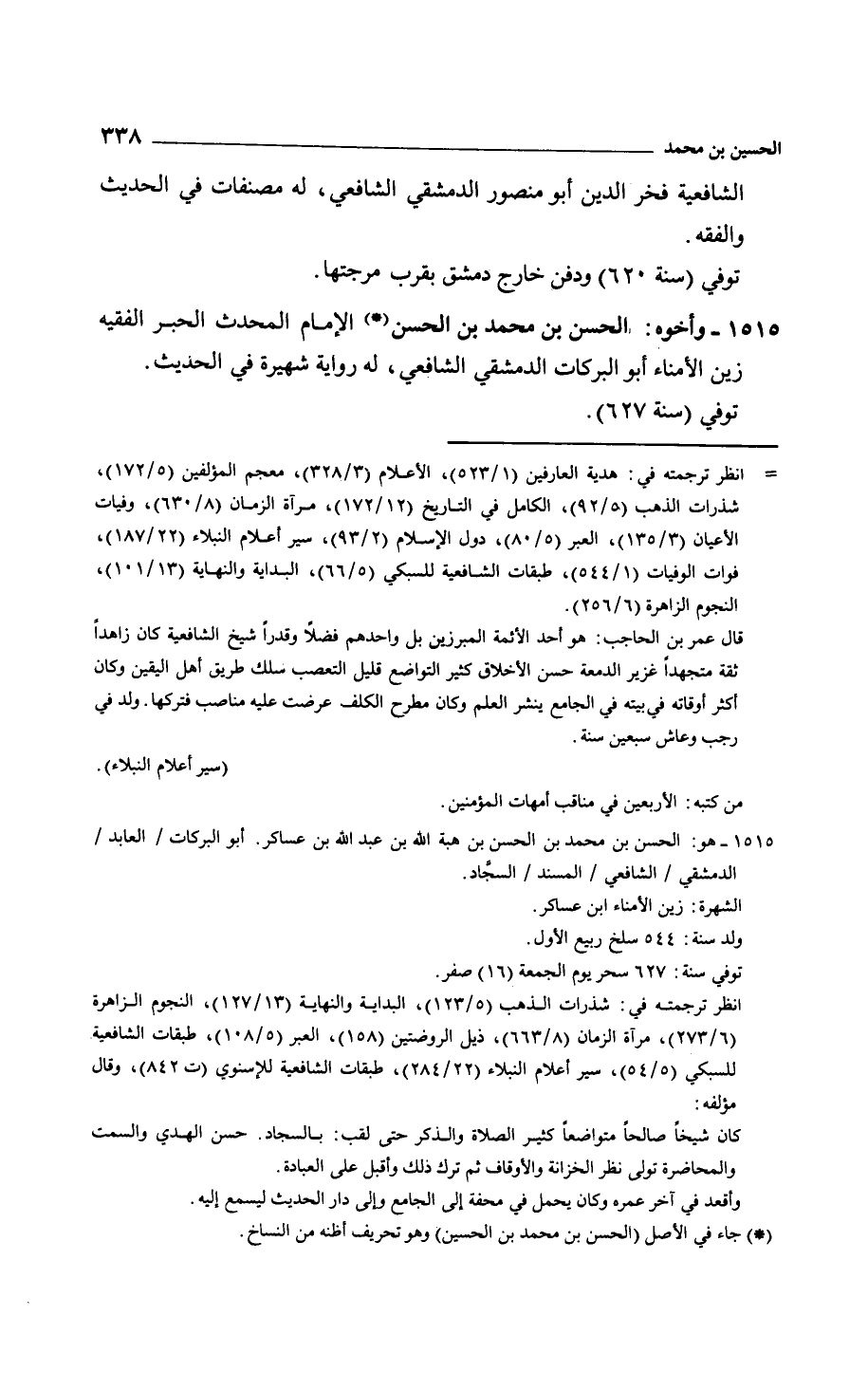 وأخوه: الحسن بن محمد بن الحسن الإمام المحدث الحبر الفقيه زين الأمناء أبو البركات الدمشقي الشافعي، له رواية شهيرة في الحديث. توفي سنة 627.