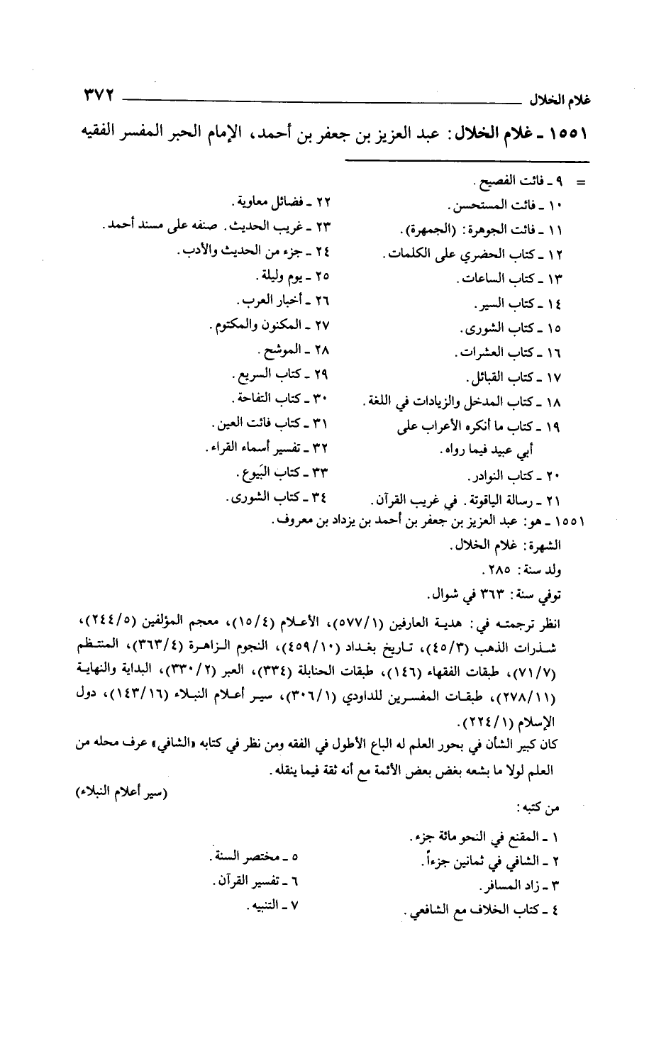 غلام الخلال: عبد العزيز بن جعفر بن أحمد، الإمام الحبر المفسر الفقيه