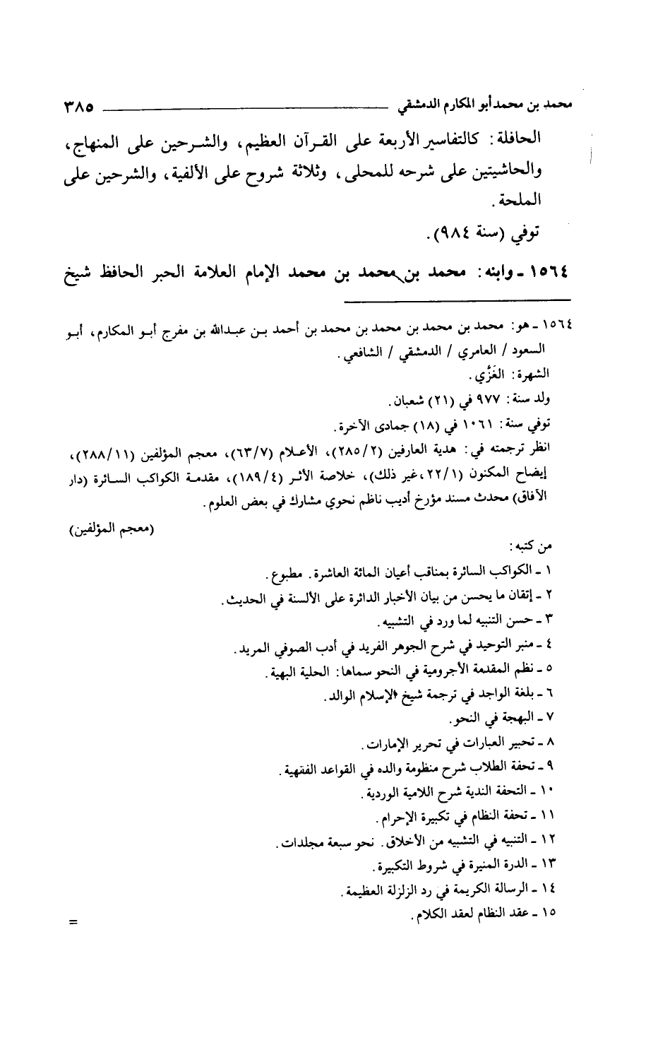 الحافلة: كالتفاسير الأربعة على القرآن العظيم، والشرحين على المنهاج، والحاشيتين على شرحه للمحلى، وثلاثة شروح على الألفية، والشرحين على الملحة. توفي سنة 984.