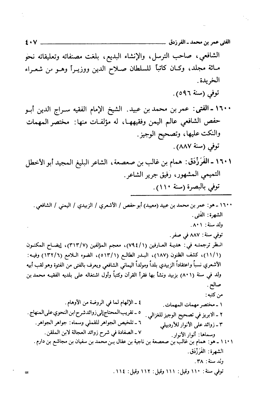 الفَرَزْدَق: همام بن غالب بن صعصعة، الشاعر البليغ المجيد أبو الأخطل التميمي المشهور، رفيق جرير الشاعر. توفي بالبصرة سنة 110.