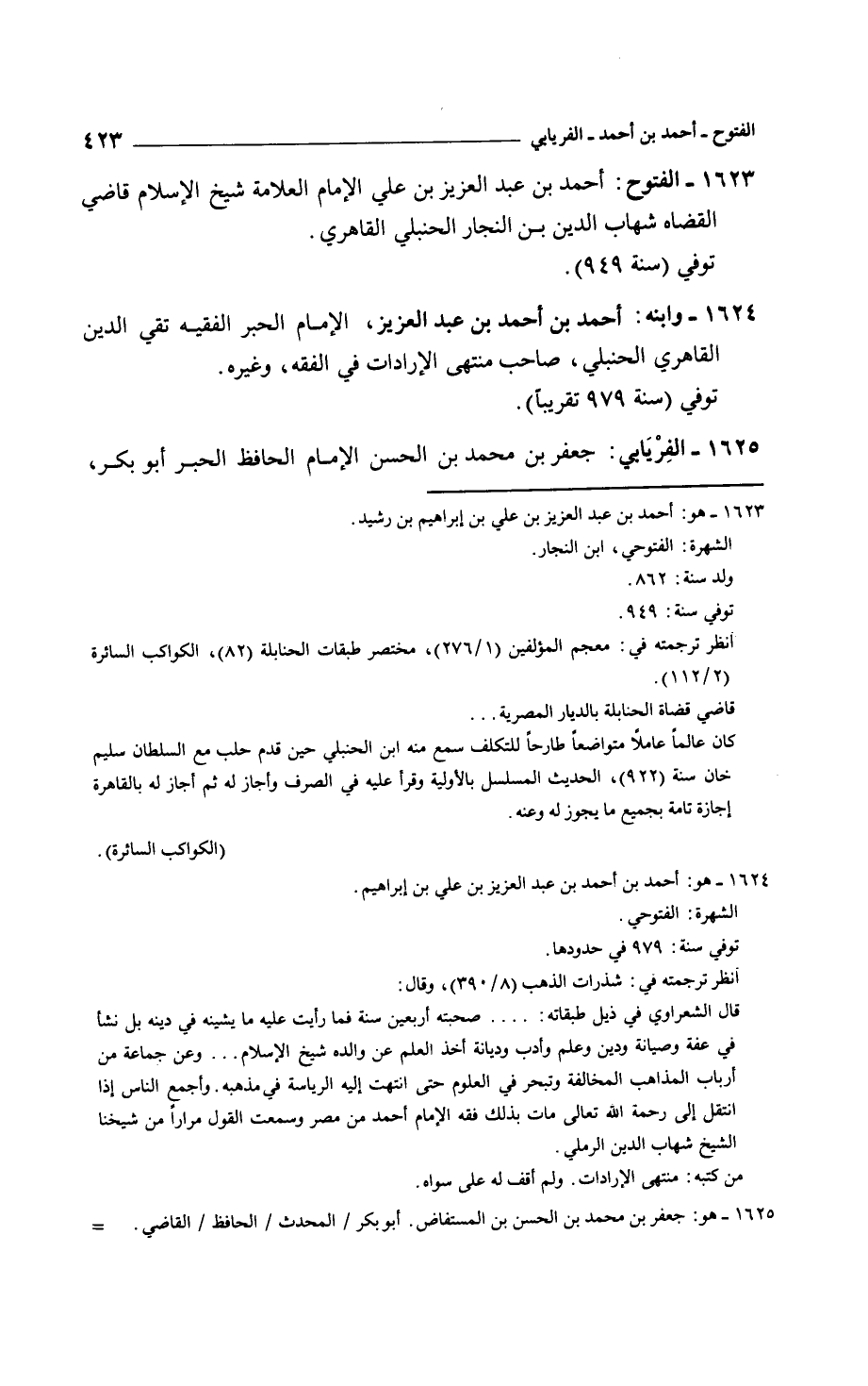 الفتوح: أحمد بن عبد العزيز بن علي الإمام العلامة شيخ الإسلام قاضي القضاة شهاب الدين بن النجار الحنبلي القاهري. توفي سنة 949.