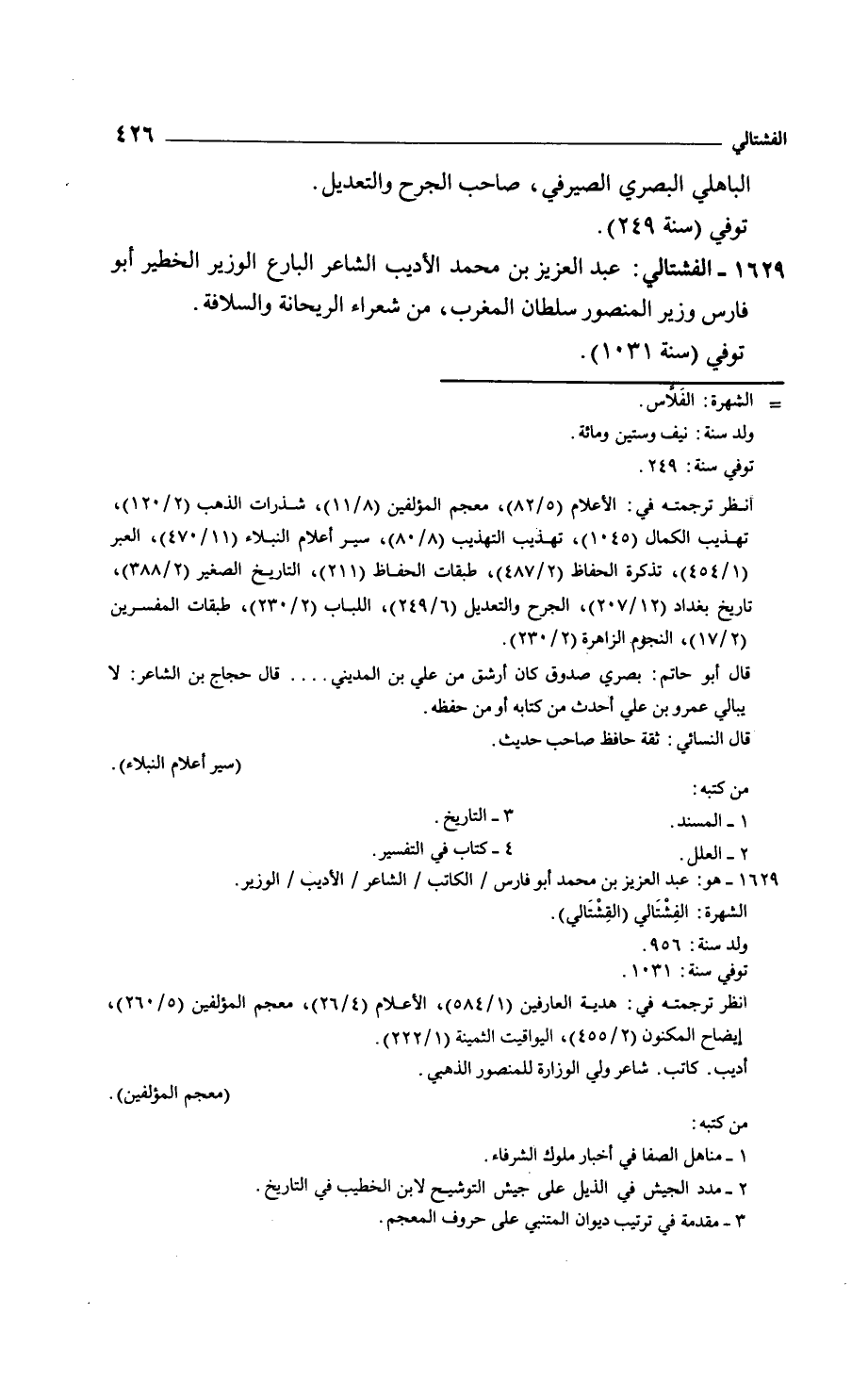 الفشتالي: عبد العزيز بن محمد الأديب الشاعر البارع الوزير الخطير أبو فارس وزير المنصور سلطان المغرب، من شعراء الريحانة والسلافة. توفي سنة 1031.