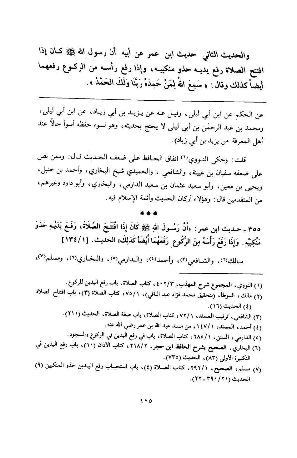 355 - حديث ابن عمر: "أَنَّ رَسُولَ اللهِ - صلى الله عليه وسلم - كَانَ إذَا افْتَتَحَ الصَّلاَةَ، رَفَعَ يَدَيْهِ حَذْوَ مَنْكِبَيْهِ. وَإذَا رَفَعْ رَأْسَهُ مِنَ الرُّكُوعِ رَفَعَهُمَا أيْضًا كَذَلِكَ" الحديث.