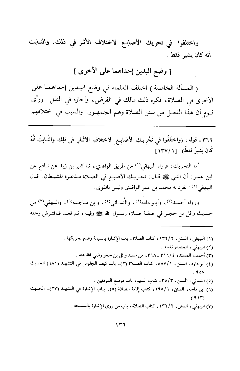 366 - قوله: (واختَلَفُوا في تَحْرِيكِ الأصَابِع لاختِلافِ الآثَارِ في ذَلِكَ والثَّابِتُ أنَّهُ كَانَ يُشيرُ فَقَطْ).