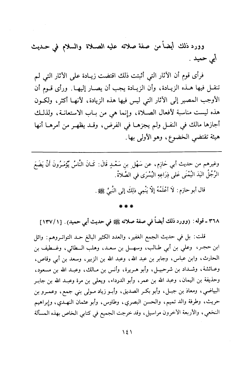 368 - قوله: (وورد ذلك أيضًا في صفة صلاته - صلى الله عليه وسلم - في حديث أبي حميد).