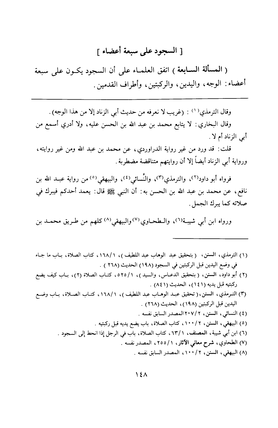 فرواه أبو داود، والترمذي، والنسائي، والبيهقي من رواية عبد الله بن نافع، عن محمد بن عبد الله بن الحسن به: أن النبي - صلى الله عليه وسلم - قال: يعمد أحدكم فيبرك في صلاته كما يبرك الجمل.