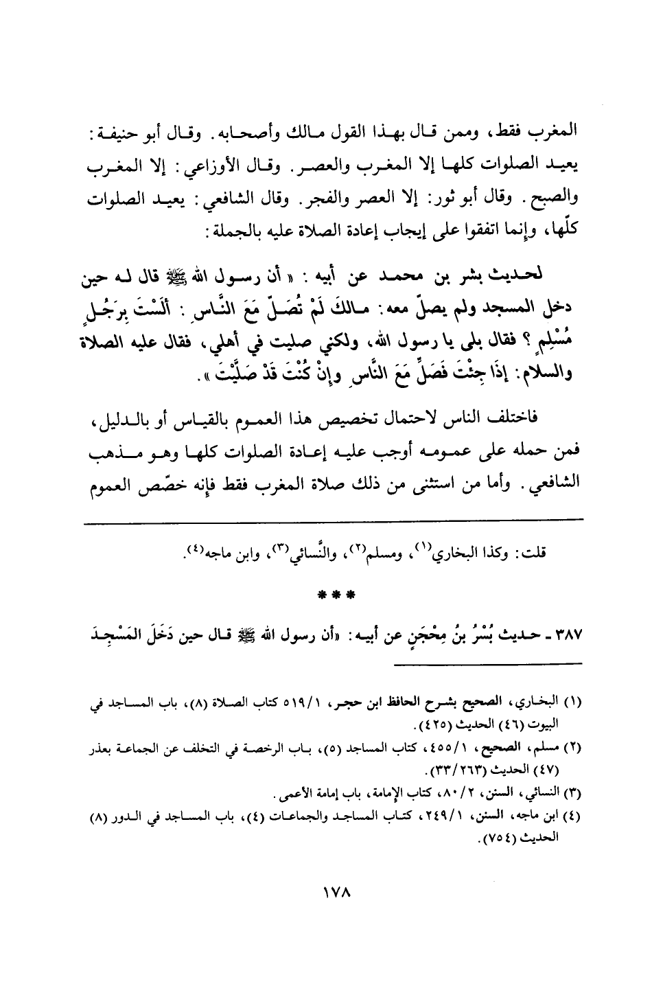387 - حديث بُسْرُ بنُ مِحْجَنٍ عن أبيه: "أن رسول الله - صلى الله عليه وسلم - قال حين دَخَلَ المَسْجِدَ