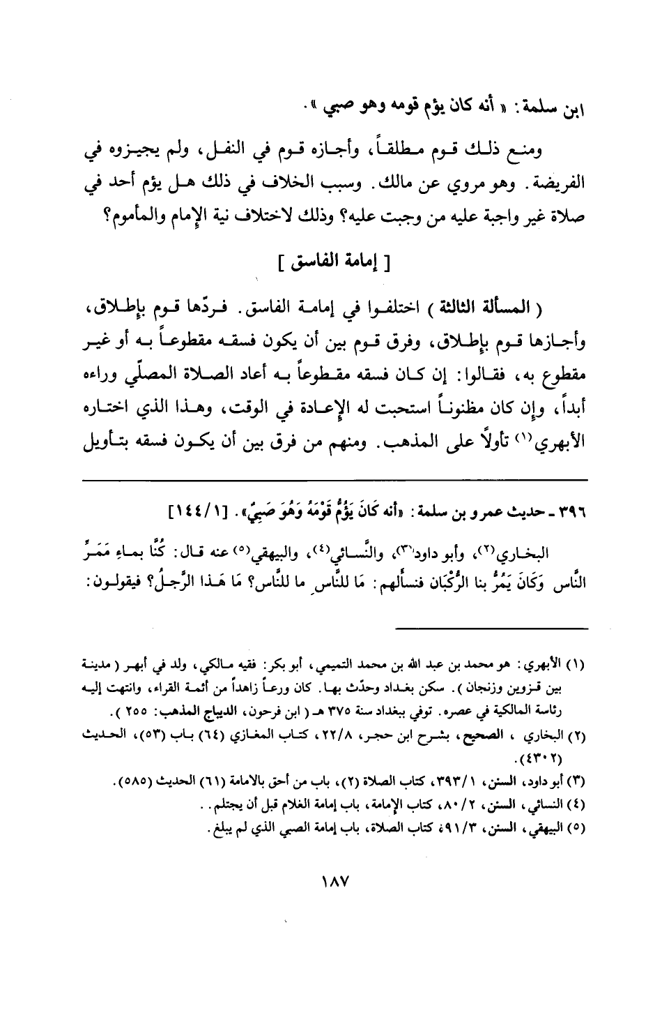 396 - حديث عمرو بن سلمة: "أنه كَانَ يَؤُمُّ قَوْمَهُ وَهُوَ صَبِيٌ".