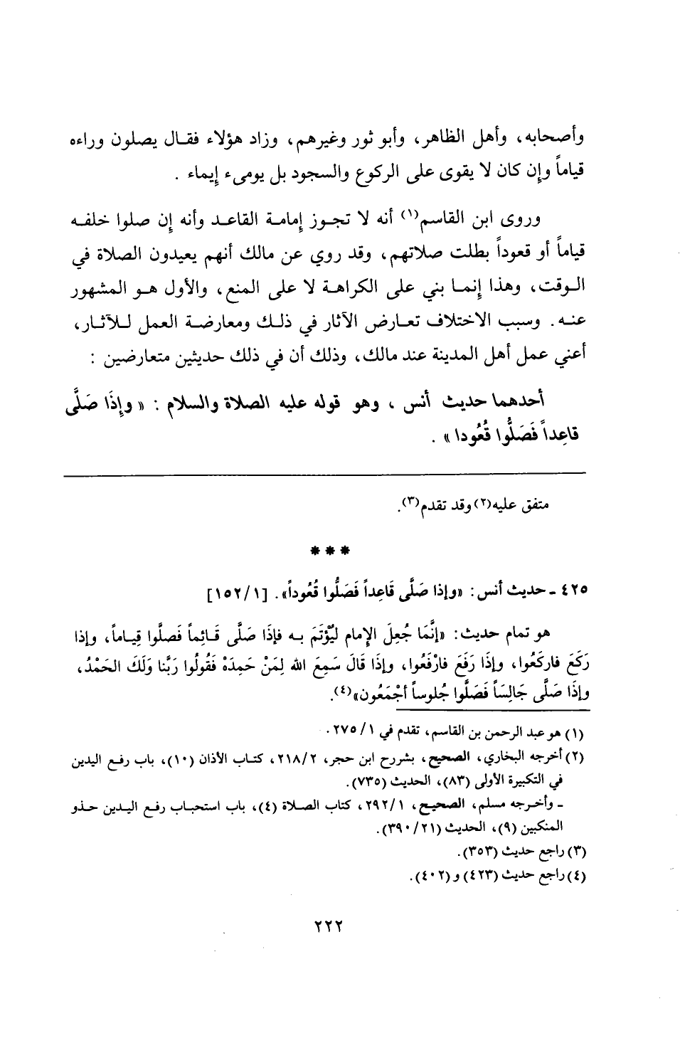 425 - حديث أنس: "وإذا صَلَّى قَاعِدًا فَصَلُّوا قُعُودًا".