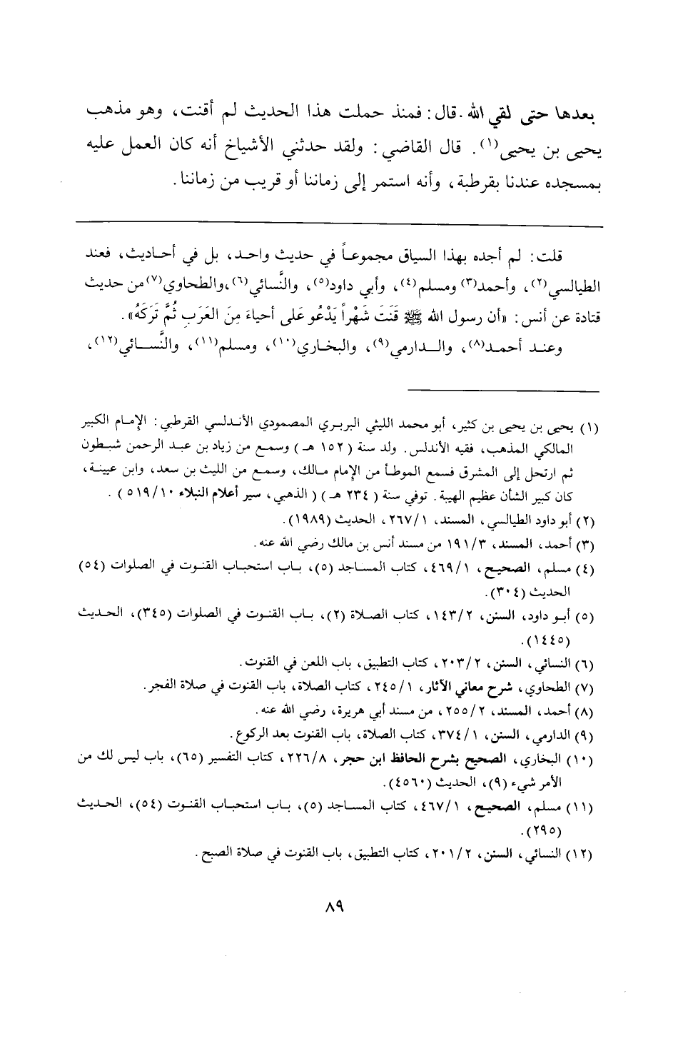 قلت: لم أجده بهذا السياق مجموعًا في حديث واحد، بل في أحاديث، فعند الطيالسي، وأحمد ومسلم، وأبي داود، والنَّسائي، والطحاوي من حديث قتادة عن أنس: "أن رسول الله - صلى الله عليه وسلم - قَنَتَ شَهْرًا يَدْعُو عَلى أحياءَ مِنَ العَرَبِ ثُمَّ تَرَكَهُ".