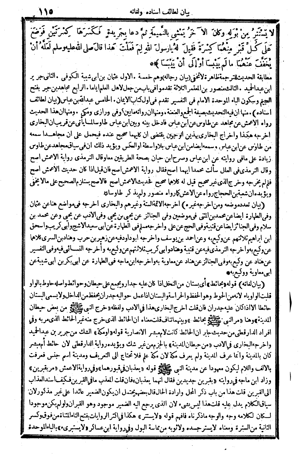 بَيَان لطائف اسناده مِنْهَا: أَن فِيهِ التحديث بِصِيغَة الْجمع والعنعنة. وَمِنْهَا: أَن رُوَاته مَا بَين كُوفِي ورازي ومكي. وَمِنْهَا: أَن هَذَا الحَدِيث رَوَاهُ الْأَعْمَش عَن مُجَاهِد عَن طَاوس عَن ابْن عَبَّاس، فَادْخُلْ بَينه وَبَين ابْن عَبَّاس طاوساً، لما يَأْتِي عَن قريب أَن البُخَارِيّ أخرجه هَكَذَا، وَإِخْرَاج البُخَارِيّ بِهَذَيْنِ الْوَجْهَيْنِ يَقْتَضِي أَن كليهمَا صَحِيح عِنْده، فَيحمل على أَن مُجَاهدًا سَمعه من طَاوس عَن ابْن عَبَّاس، وسَمعه أَيْضا من ابْن عَبَّاس بِلَا وَاسِطَة. أَو الْعَكْس، وَيُؤَيّد ذَلِك أَن فِي سِيَاق: مُجَاهِد عَن طَاوس زِيَادَة على مَا فِي رِوَايَته عَن ابْن عَبَّاس، وَصرح ابْن حبَان بِصِحَّة الطَّرِيقَيْنِ مَعًا، وَقَالَ التِّرْمِذِيّ: رِوَايَة الْأَعْمَش أصح. وَقَالَ التِّرْمِذِيّ فِي (الْعِلَل) : سَأَلت مُحَمَّدًا: أَيهمَا أصح؟ فَقَالَ: رِوَايَة الْأَعْمَش أصح، فَإِن قيل: إِذا كَانَ حَدِيث الْأَعْمَش أصح فلِمَ لم يُخرجهُ وَخرج الَّذِي غير صَحِيح؟ قيل لَهُ: كِلَاهُمَا صَحِيح؟ قيل لَهُ: كِلَاهُمَا صَحِيح، فَحَدِيث الْأَعْمَش أصح، فَالْأَصَحّ يسْتَلْزم الصَّحِيح على مَا لَا يخفى، وَيُؤَيِّدهُ أَن شُعْبَة بن الْحجَّاج رَوَاهُ عَن الْأَعْمَش كَمَا رَوَاهُ مَنْصُور وَلم يذكر طاوساً.