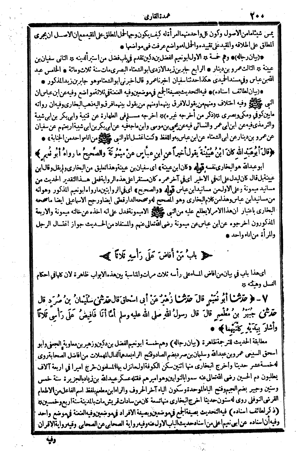 بَيَان رِجَاله وهم خَمْسَة: الأول: أَبُو نعيم الْفضل بن دُكَيْن تقدم فِي بَاب فضل من اسْتَبْرَأَ لدينِهِ. الثَّانِي: سُفْيَان بن عُيَيْنَة الثَّالِث: عَمْرو بن دِينَار. الرَّابِع: جَابر بن زيد الْأَزْدِيّ، أَبُو الشعْثَاء الْبَصْرِيّ، مَاتَ سنة ثَلَاث وَمِائَة. الْخَامِس: عبد الله بن عَبَّاس، وَفِي (مُسْند الْحميدِي) هَكَذَا حَدثنَا سُفْيَان. أخبرنَا عَمْرو. قَالَ: أَخْبرنِي أَبُو الشعْثَاء. وَهُوَ جَابر بن زيد الْمَذْكُور.
