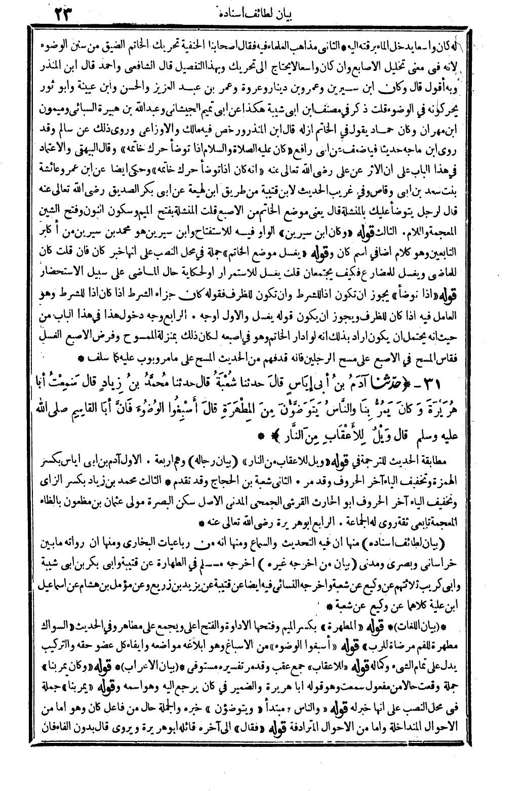 165 - حدّثنا آدَمُ بنُ أبي إيَاسٍ قالَ حَدثنَا شُعْبَةُ قَالَ حَدثنَا مُحمَّدُ بنُ زِيادٍ قَالَ سَمِعْتُ أَبَا هُرَيْرَةَ وَكانَ يَمُرُّ بِنَا والنَّاسُ يَتَوَضَّؤُنَ مِنَ المِطْهَرَةِ قالَ أَسْبِغُوا الوُضُوءَ فَانَّ أبَا القاسِمِ صلى الله عَلَيْهِ وَسلم قَالَ وَيْلٌ لِلأَعْقَابِ مِنَ النَّار.