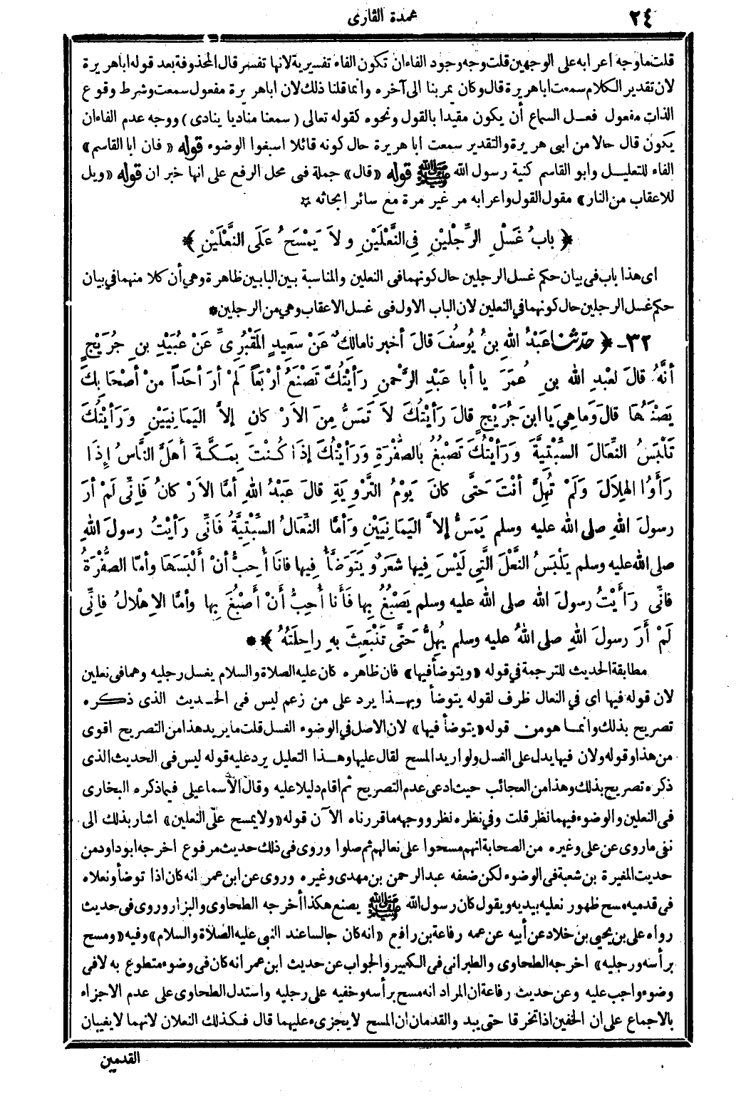 30 - (بابُ غَسْلِ الرِّجْليْنِ فِي النَّعْلَيْنِ ولاَ يَمْسَحُ عَلَى النَّعْلَيْنِ)