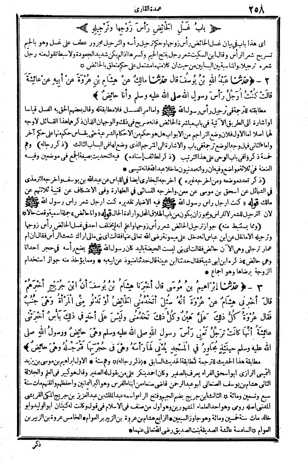 295 - حدّثنا عَبْدُ اللَّهِ بْنُ يُوسُفَ قالَ حدّثنا مالِكٌ عَنْ هِشَامِ بْنِ عُرْوَةَ عَنْ أبِيهِ عَنْ عَائِشَةَ قالَتْ كُنْتُ أُرَجِّلُ رَأْسُ رسولِ اللَّهِ صلى الله عَلَيْهِ وَسلم وَأَنا حائِضٌ. .