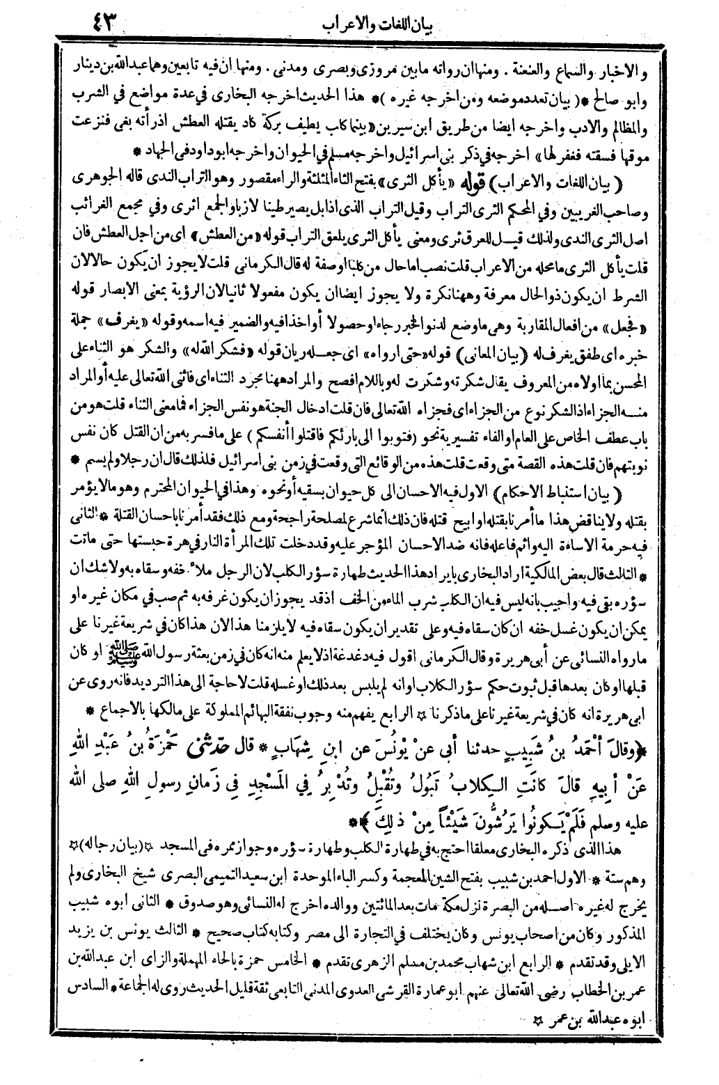 والإخبار وَالسَّمَاع والعنعنة. وَمِنْهَا: أَن رُوَاته مَا بَين مروزي وبصري ومدني. وَمِنْهَا: أَن فِيهِ تابعين وهما: عبد الله بن دِينَار وَأَبُو صَالح.